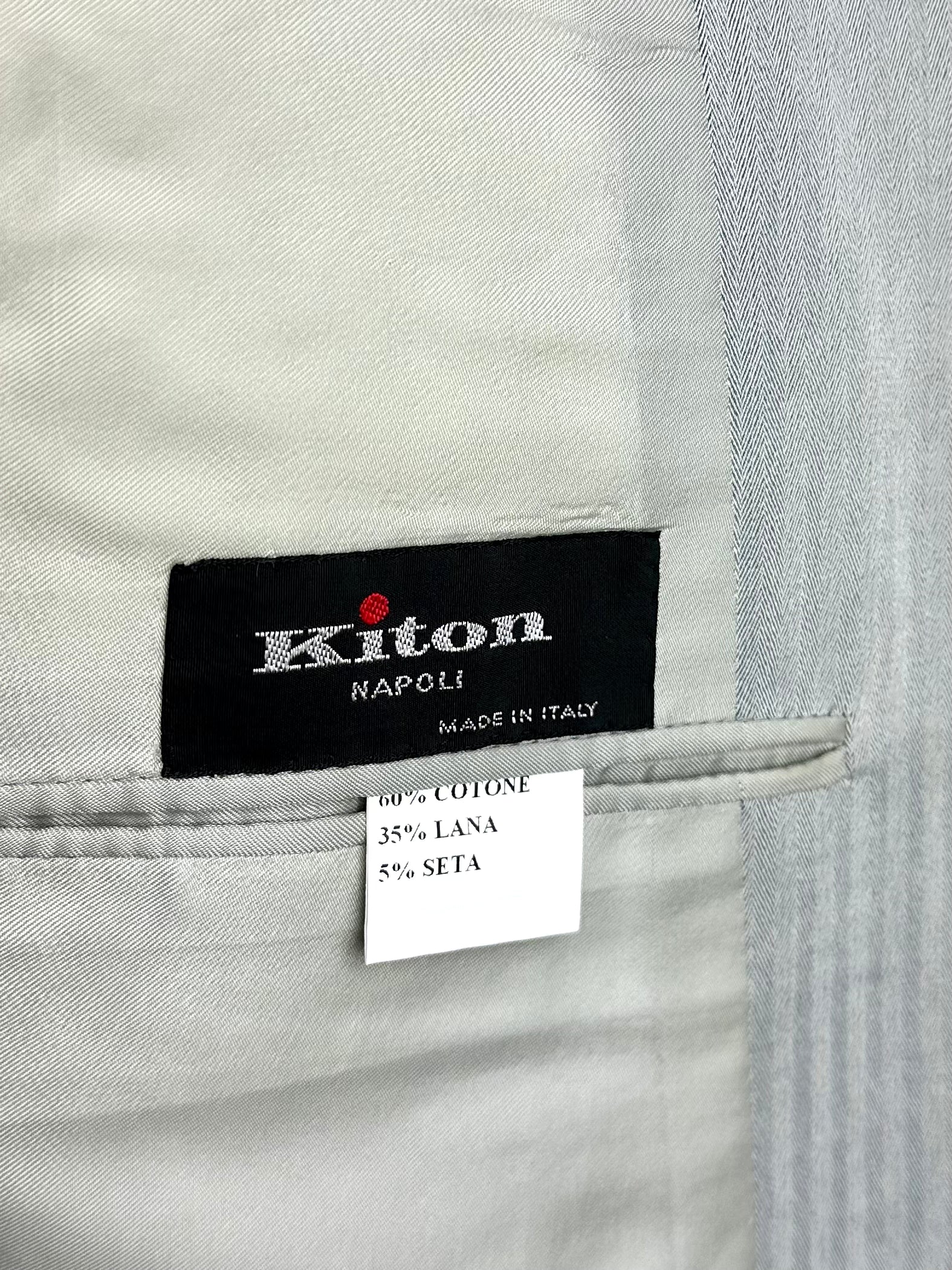 Finely crafted textiles have always been a cornerstone at Kiton: in their own wool mill in Biella, Italy. The deconstructed nature of the garment and the use of soft yarn offer an authentic, personal experience of refined comfort that combines allure and freedom of movement. In a journey of sartorial exploration and evolution that redefines menswear in the name of essentialism, every Kiton jacket is a work of fine design. Entirely cut and constructed by hand in Naples, Kiton’s 25 master craftsmen have carried out 1,800 steps to create this architectural piece.