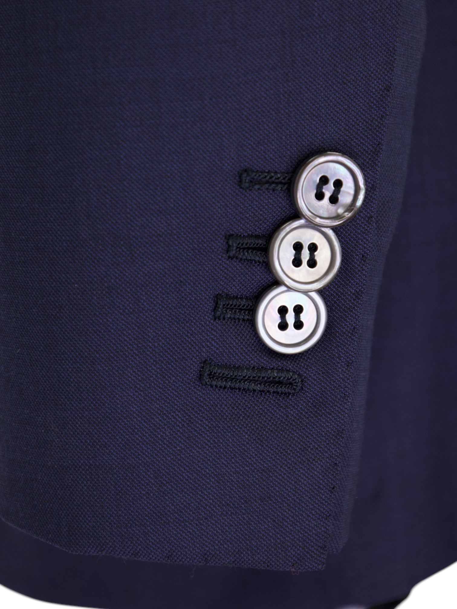 Also known as stacked buttons or waterfall buttons, kissing buttons are associated with Italian tailoring as Italian tailors make their jacket sleeve buttons in the kissing style. In this style, buttons touch each other and overlap one another. Handmade buttonholes; Even this step, apparently the simplest, is treated with an abundance of detail. Attaching the buttons is a job that requires patience and must be completed to perfection.
