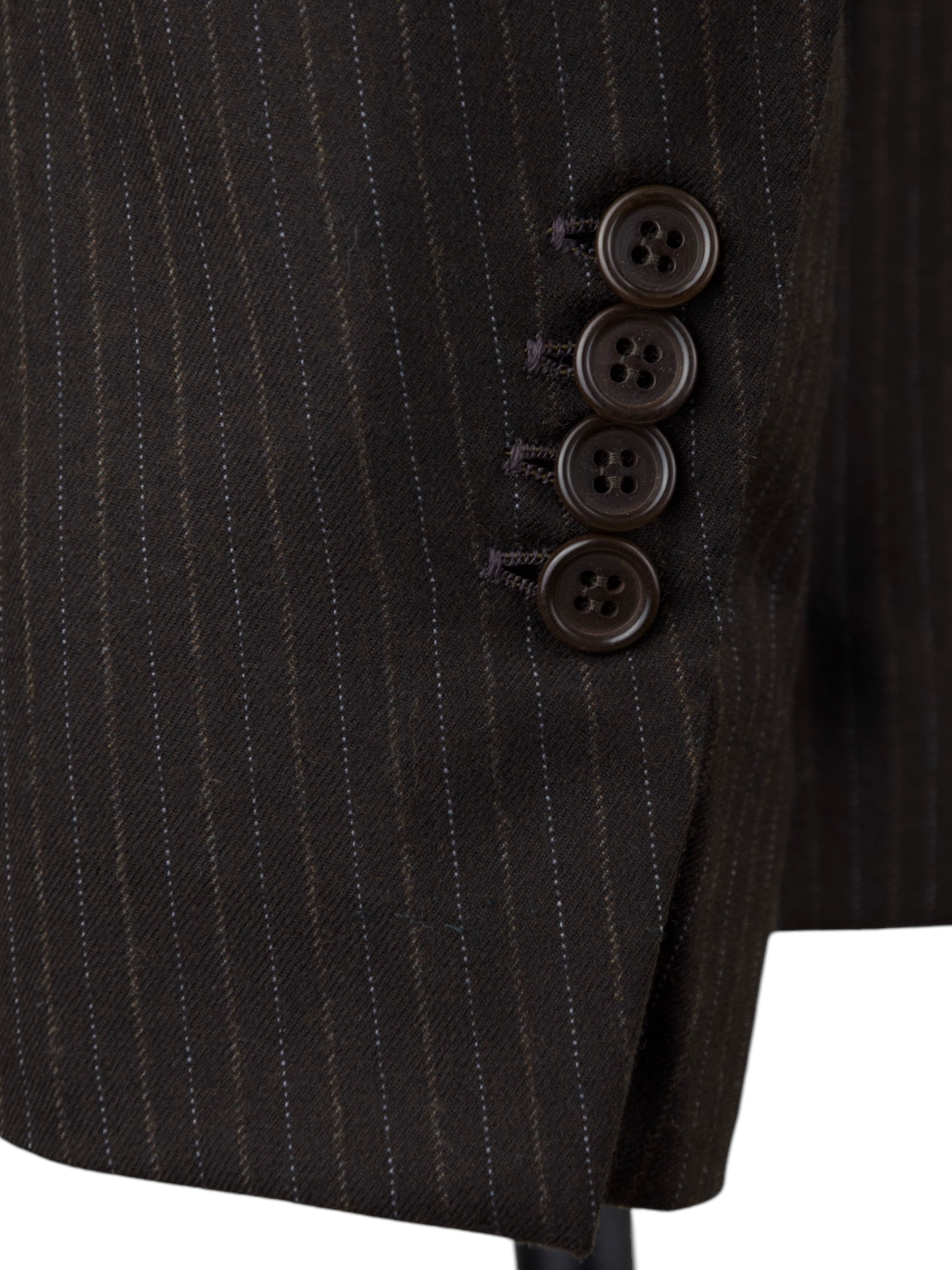 Also known as stacked buttons or waterfall buttons, kissing buttons are associated with Italian tailoring as Italian tailors make their jacket sleeve buttons in the kissing style. In this style, buttons touch each other and overlap one another. Handmade buttonholes; Even this step, apparently the simplest, is treated with an abundance of detail. Attaching the buttons is a job that requires patience and must be completed to perfection.