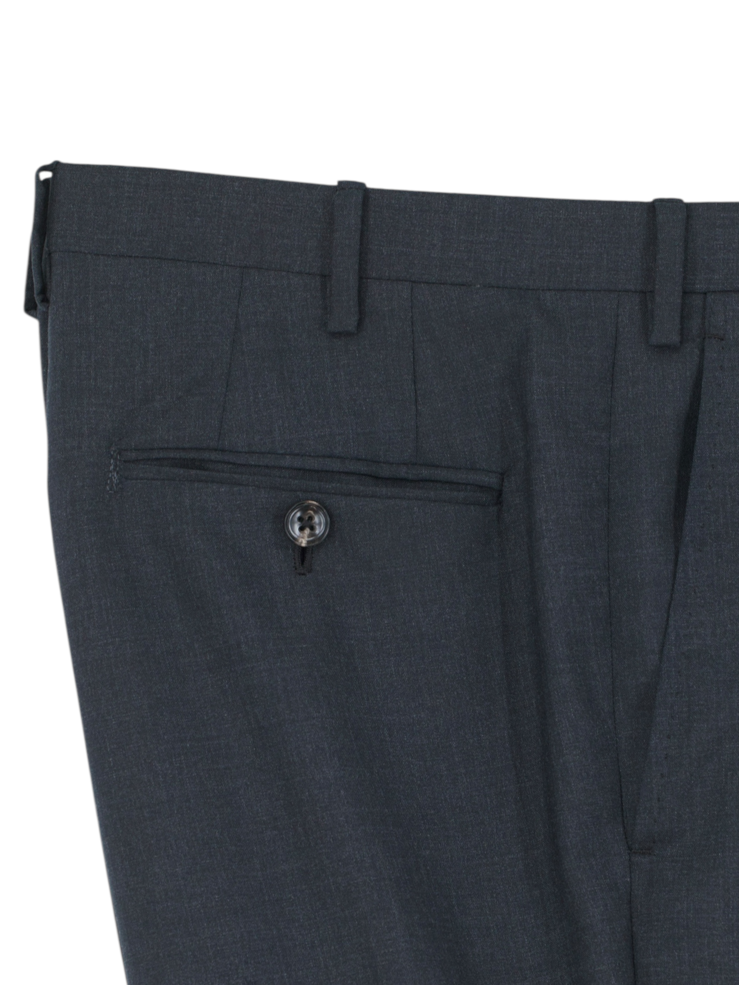 Discover the Kiton Dark Grey Fine Wool Neapolitan Suit, a timeless cornerstone of the sartorial wardrobe and an ideal first suit for a well considered collection, equally appealing to the seasoned connoisseur seeking another nuanced shade of grey. Cut from fine wool in a versatile dark tone, it offers depth and polish without excess. The jacket is tailored with notch lapels and a softly rolling 2.5 button closure, complemented by classic flap pockets and a fully lined interior that ensures structure and comfort. Handmade buttonholes and horn buttons lend subtle character, underscoring the garment’s artisanal pedigree.