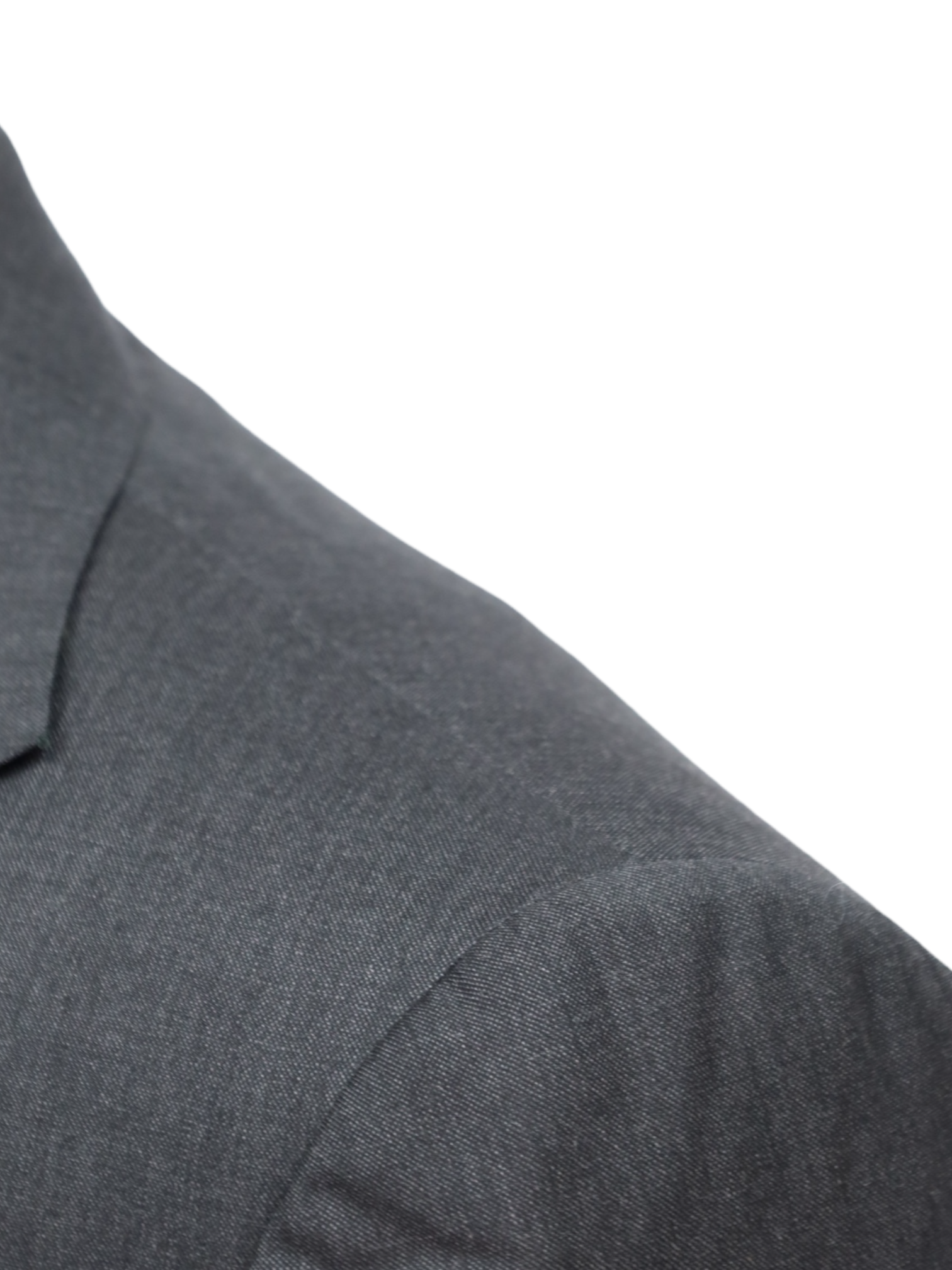 Spalla Camicia roughly translates to 'shirt sleeve' in Italian and is a shoulder style created and popularized by Neapolitan tailors. The name 'shirt sleeve' was so coined due to the characteristic shirring found at the sleeve's head where the fullness of the larger sleeve collapses. Rather than having the head of the sleeve turned back and stitched inside, the head is lapped under and stitched along the top.