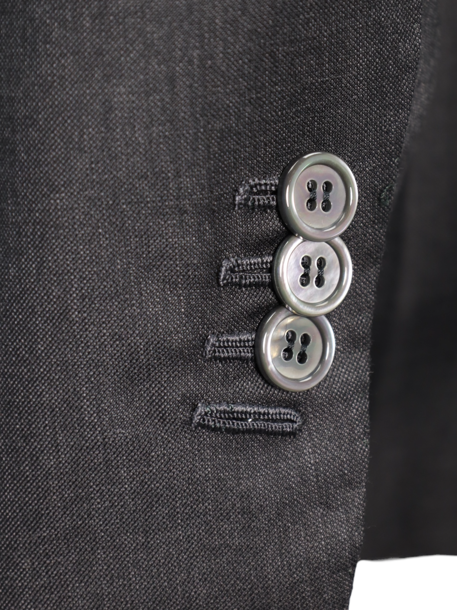 Also known as stacked buttons or waterfall buttons, kissing buttons are associated with Italian tailoring as Italian tailors make their jacket sleeve buttons in the kissing style. In this style, buttons touch each other and overlap one another. Handmade buttonholes; Even this step, apparently the simplest, is treated with an abundance of detail. Attaching the buttons is a job that requires patience and must be completed to perfection.