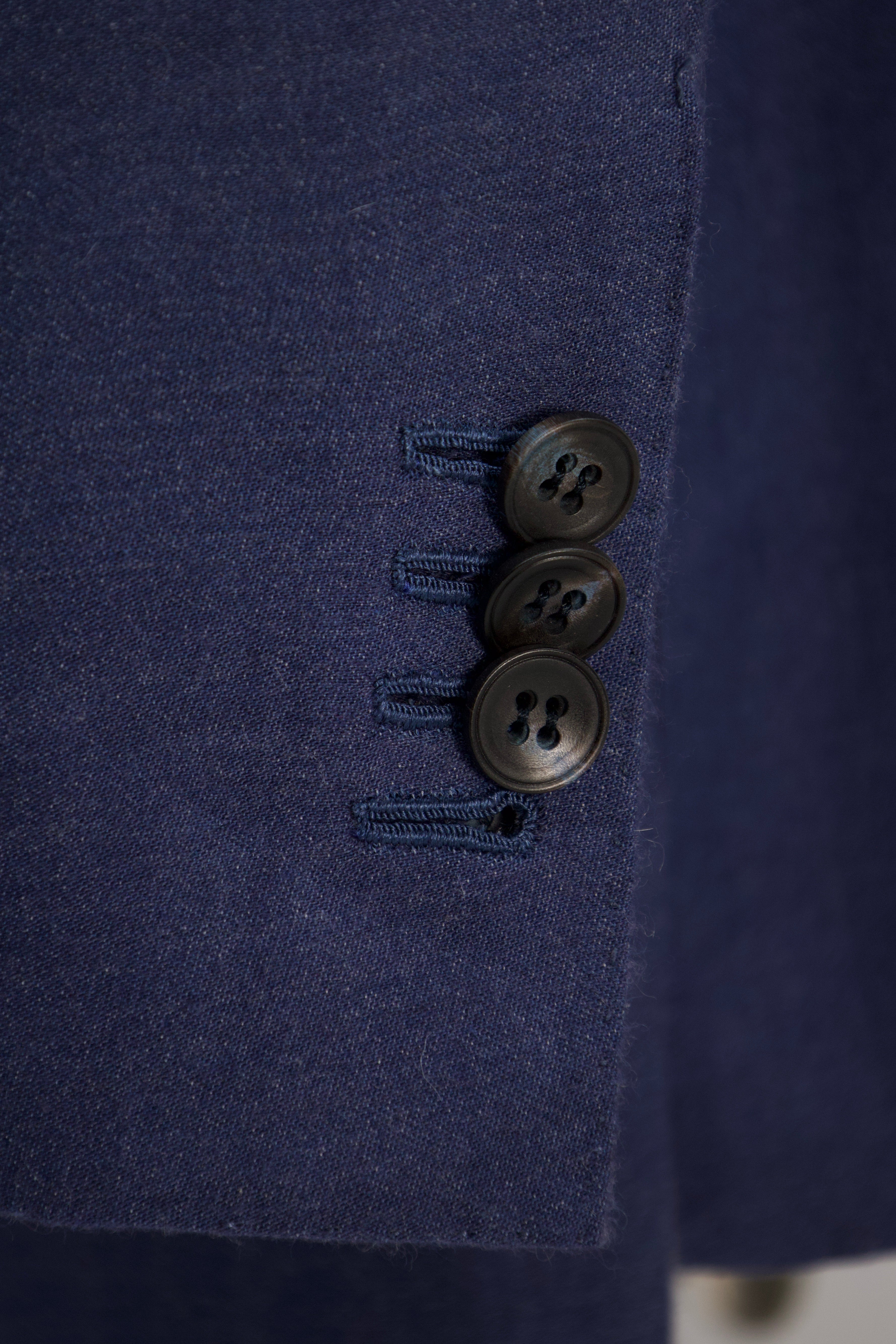 Also known as stacked buttons or waterfall buttons, kissing buttons are associated with Italian tailoring as Italian tailors make their jacket sleeve buttons in the kissing style. In this style, buttons touch each other and overlap one another. Handmade buttonholes; Even this step, apparently the simplest, is treated with an abundance of detail. Attaching the buttons is a job that requires patience and must be completed to perfection.