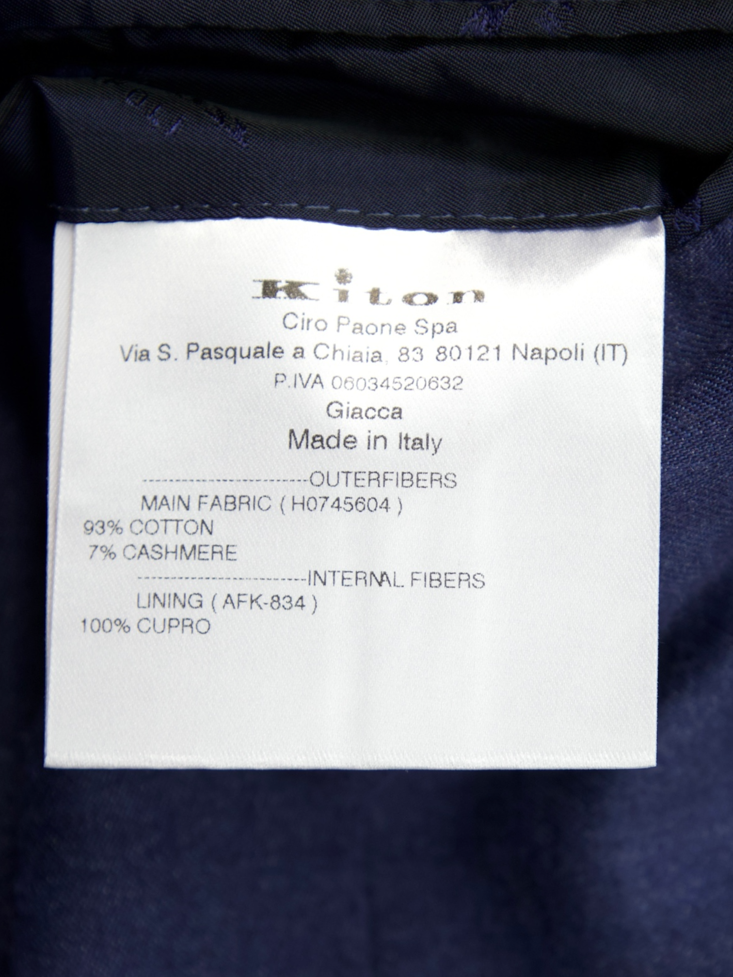 The combination of cotton and cashmere offers the perfect balance between breathability and luxury, ensuring that this jacket is not only stylish but also incredibly comfortable to wear. It's a true testament to Kiton's expertise in creating garments that combine traditional tailoring with modern sophistication. Discover the elaborated sartorial details below.