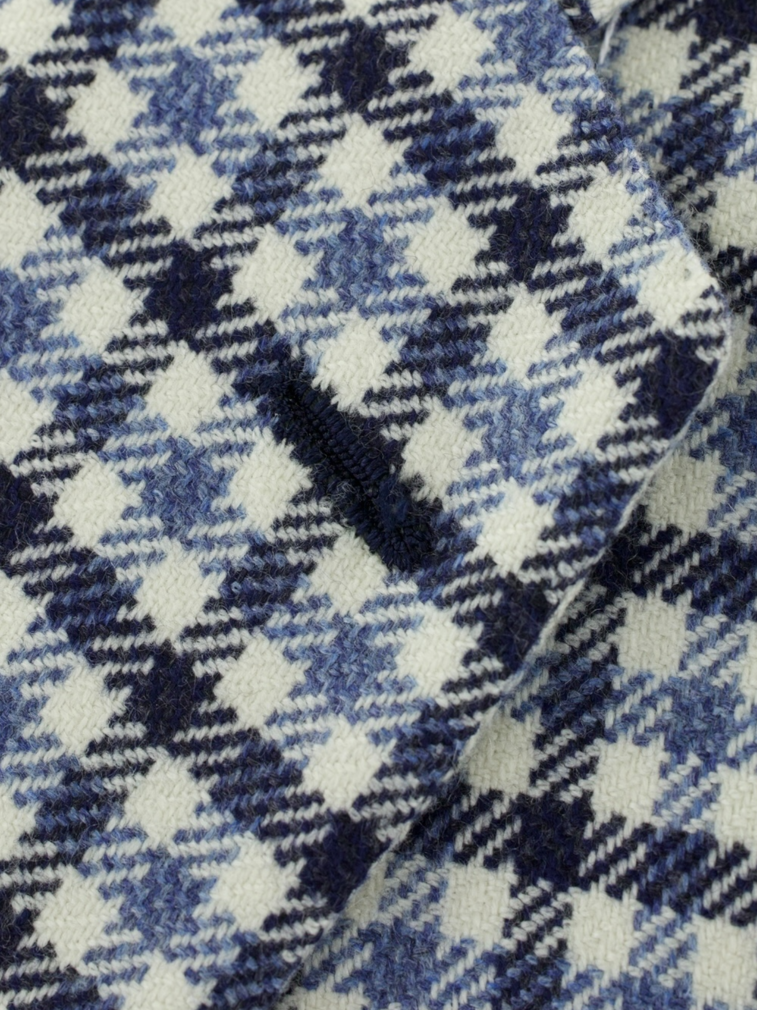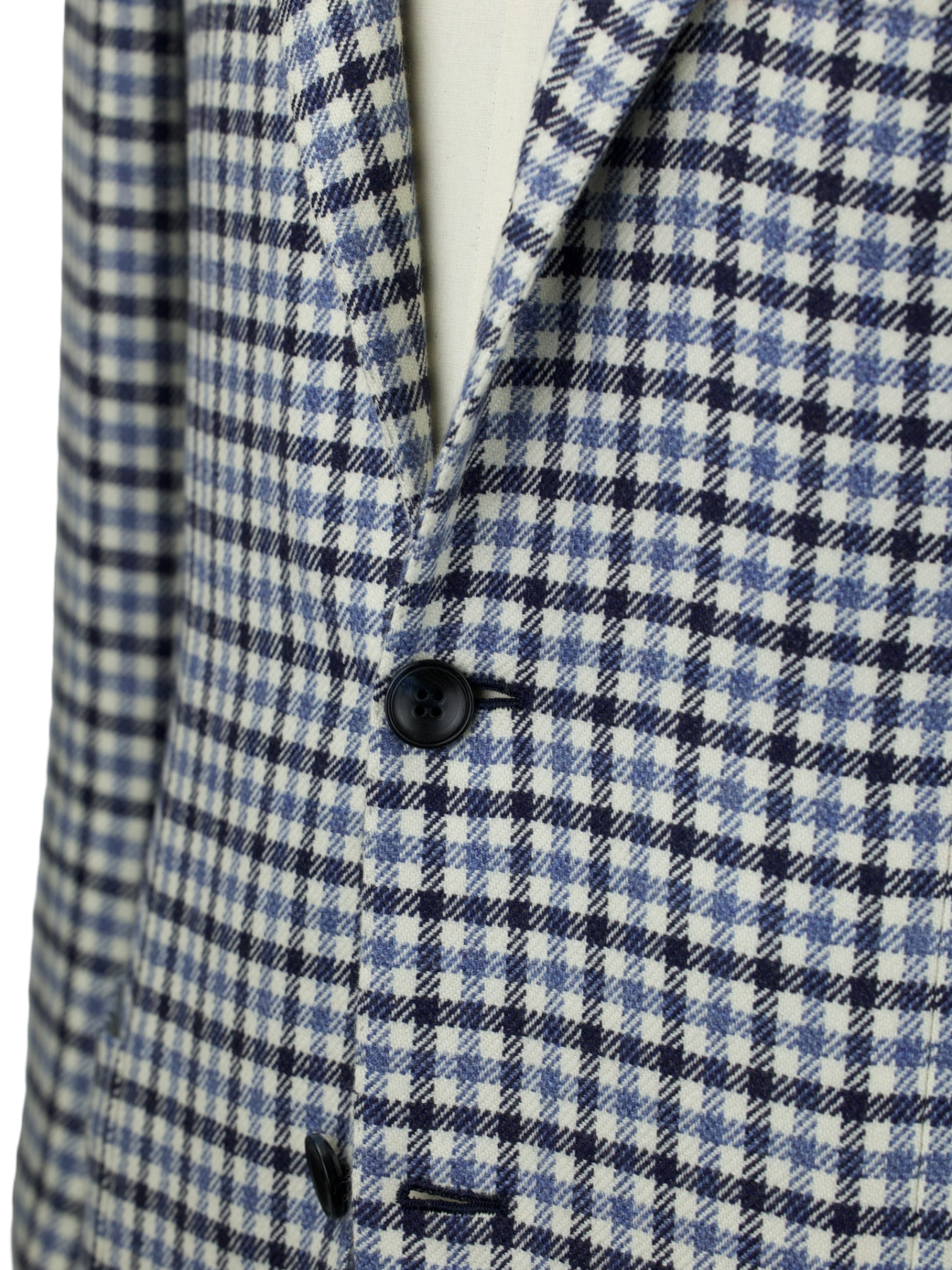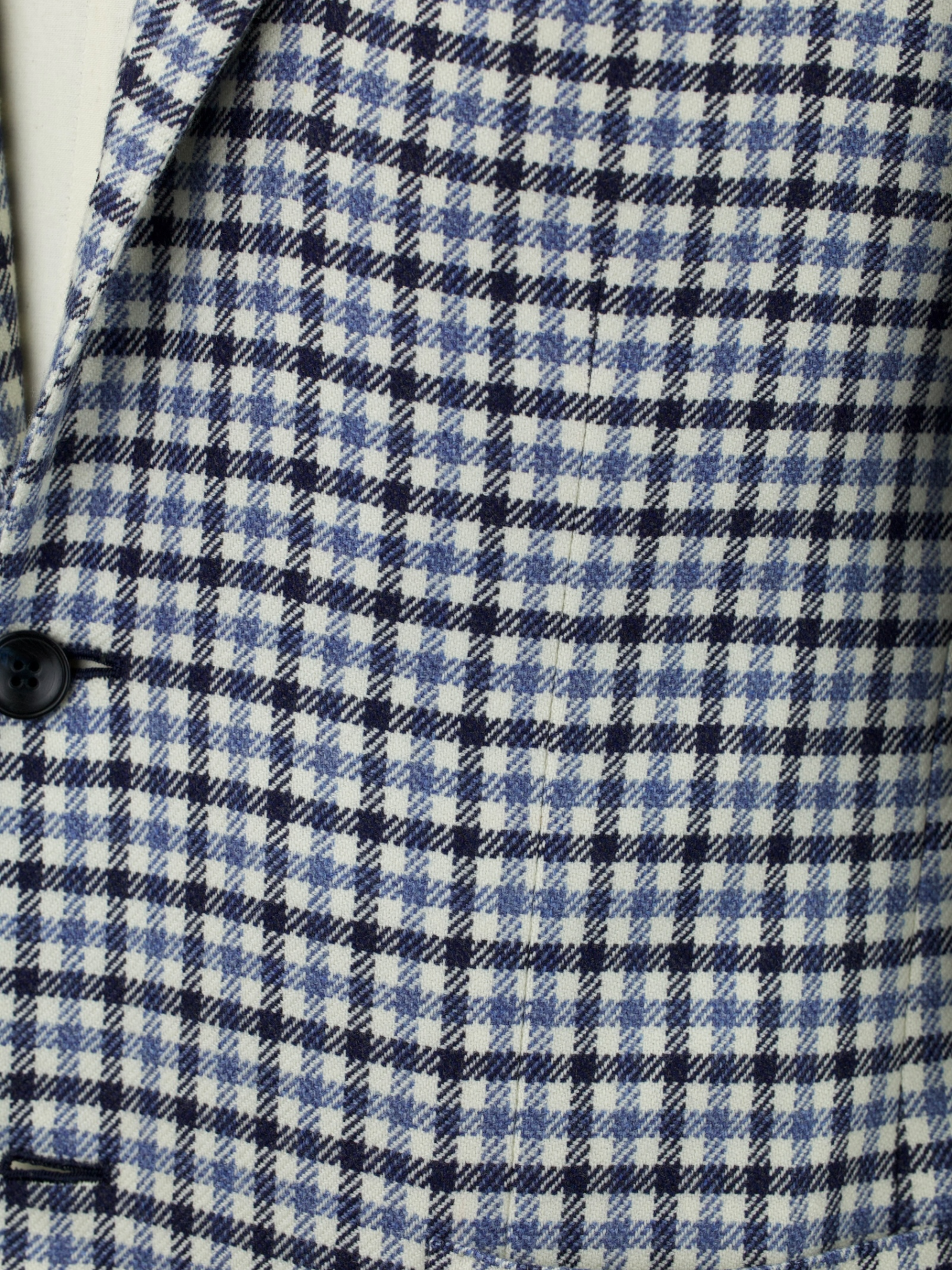 Kiton Ecru & Light Blue Pure Cashmere Gingham Check Jacket