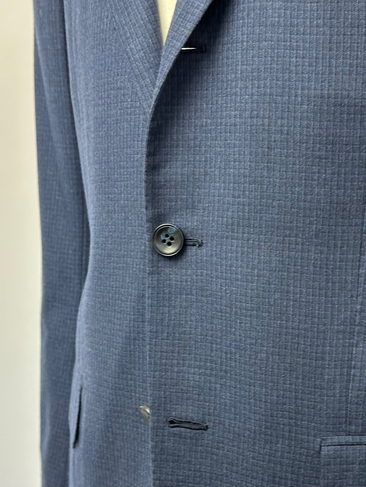 The ‘tre bottoni stirato a due’, also known as the three rolling on two lapel style, is perhaps the most infamous characteristic of the Neapolitan style jacket. The top button and buttonhole are ornamental, so are left unbuttoned. As the lapel rolls down it elegantly folds over the top button and stops just 4 cm above the second button creating the distinct roll of the lapel the style is known for. As it is intended to remain unbuttoned, the top buttonhole is actually made inside out so the beautiful side will still be visible.