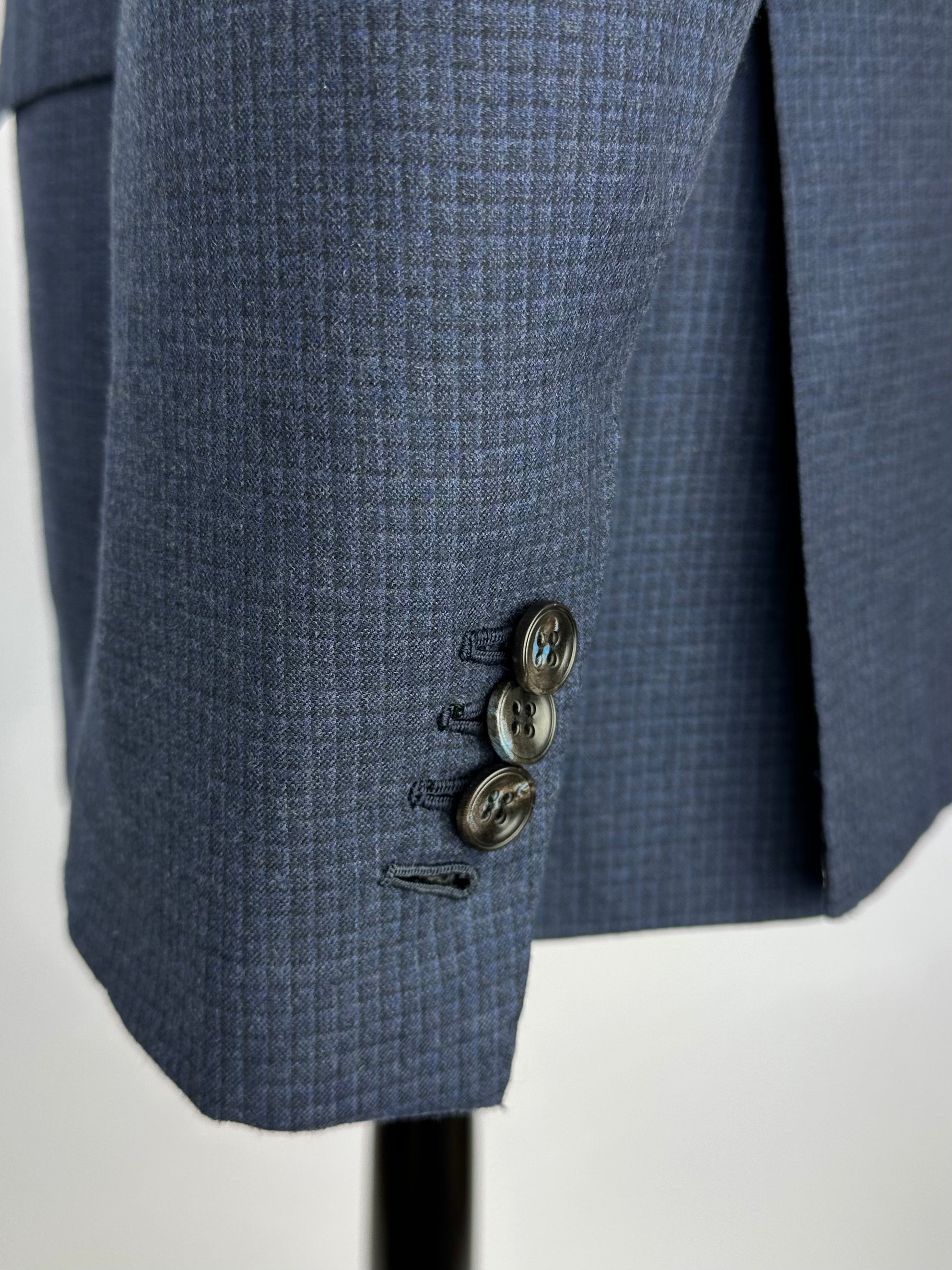 Also known as stacked buttons or waterfall buttons, kissing buttons are associated with Italian tailoring as Italian tailors make their jacket sleeve buttons in the kissing style. In this style, buttons touch each other and overlap one another. Handmade buttonholes; Even this step, apparently the simplest, is treated with an abundance of detail. Attaching the buttons is a job that requires patience and must be completed to perfection.