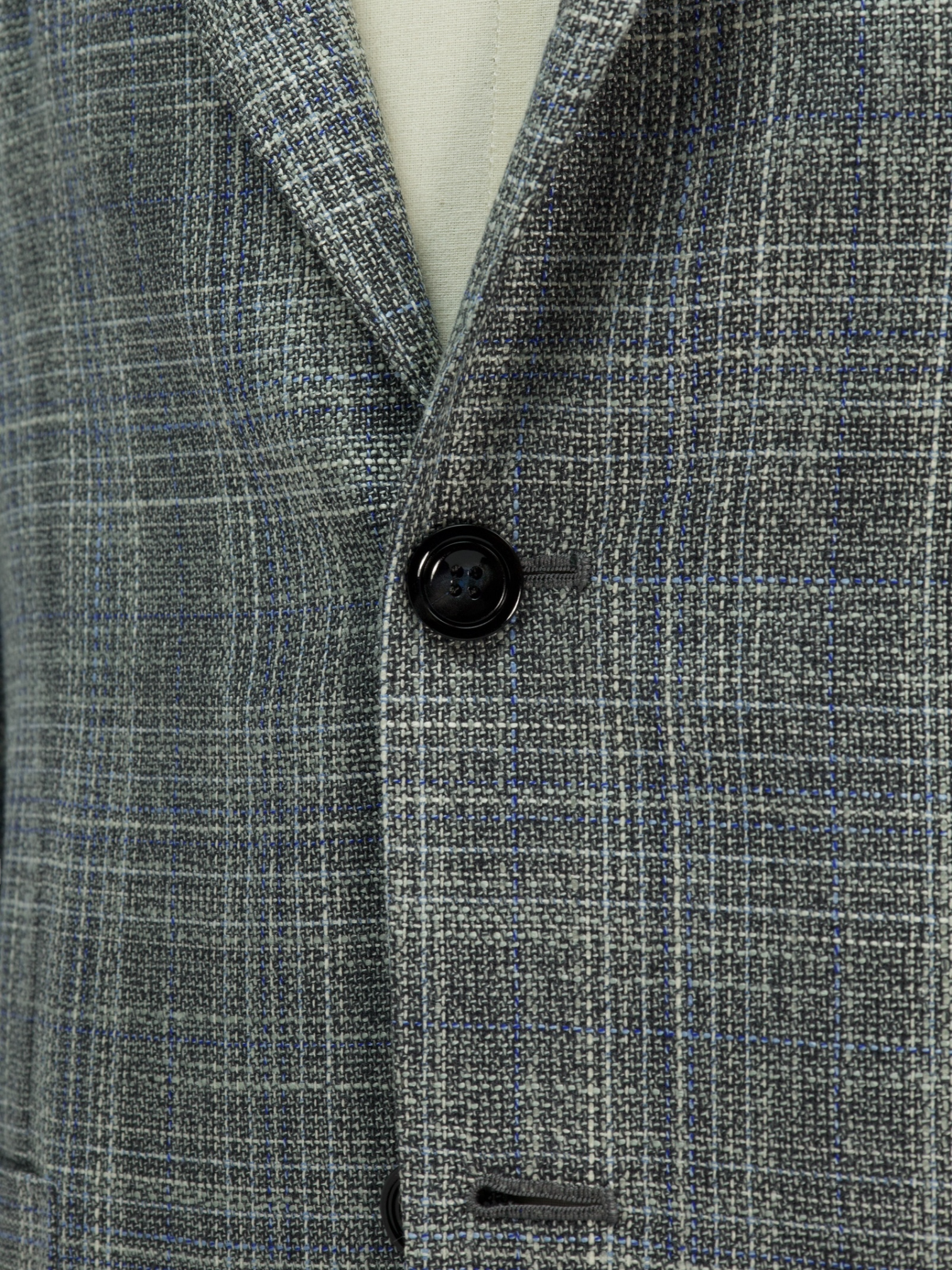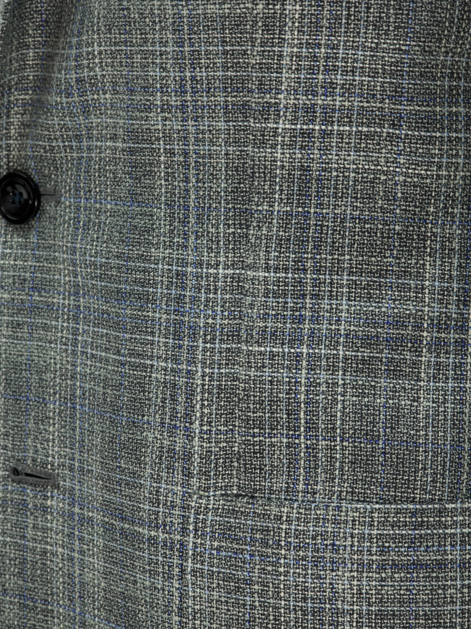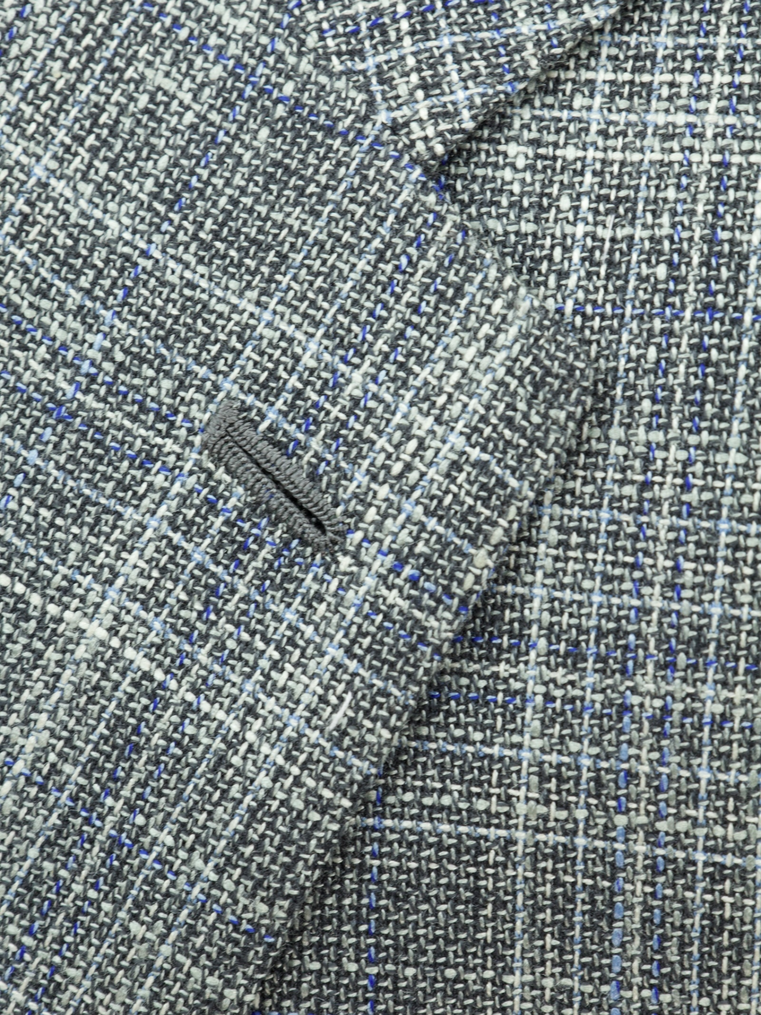 Kiton Grey & Ice Blue Virgin Wool & Silk Check Jacket
