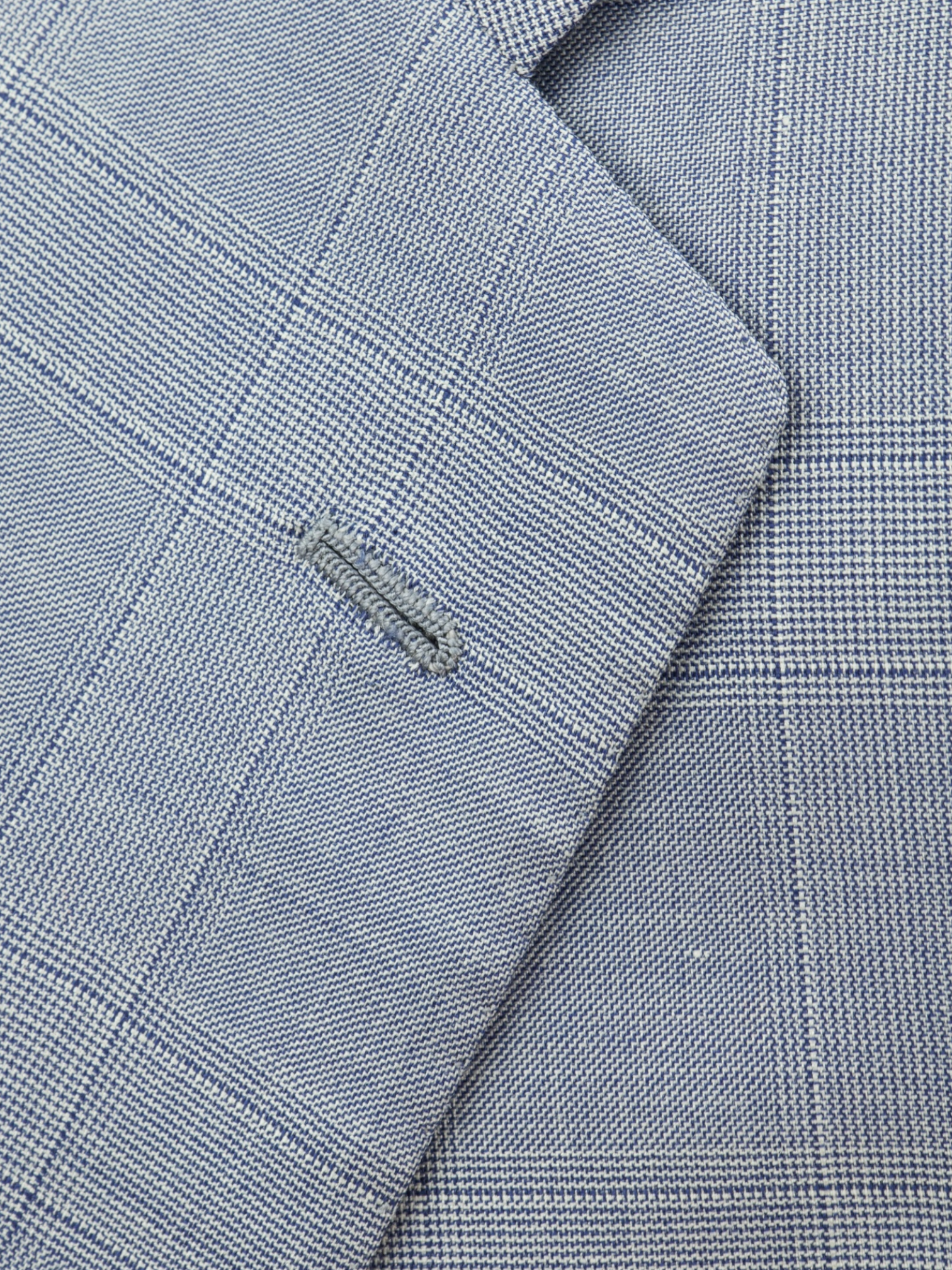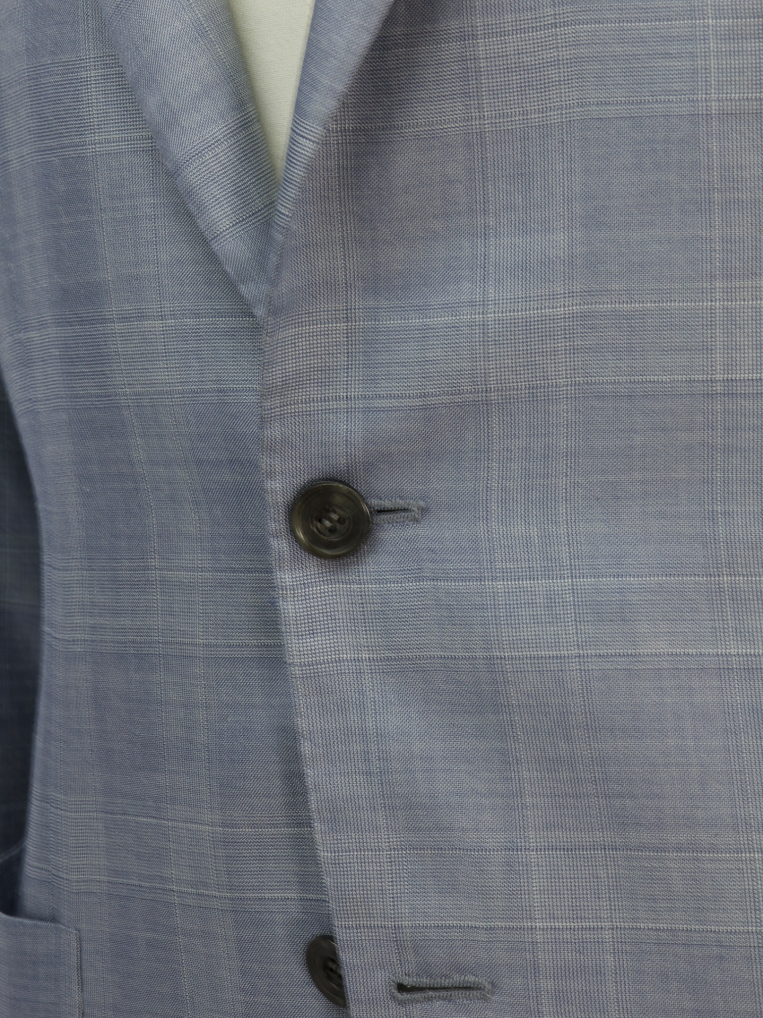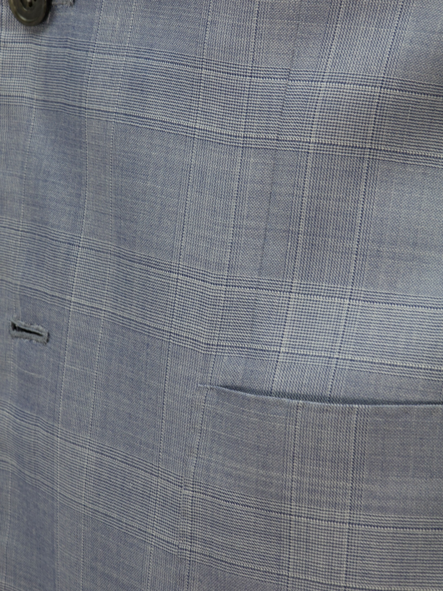 The combination of silk, cashmere, and linen ensures a fabric that drapes beautifully and provides comfort throughout the day, making it ideal for warmer weather. The ice blue color further enhances its versatility, offering a fresh and modern take on classic suiting.