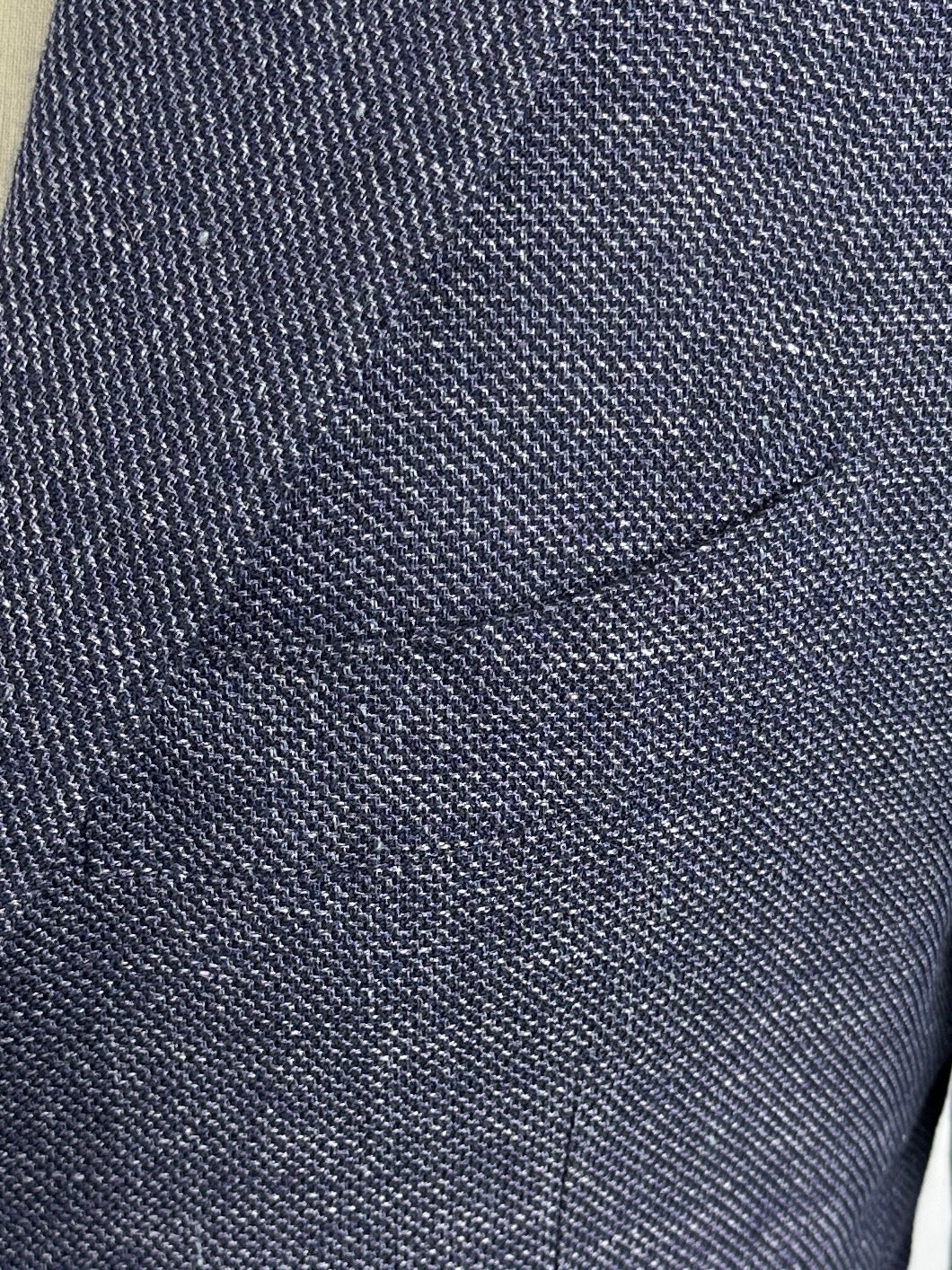 The barchetta pocket is often thought to be a tailoring detail exclusively from Italy. The word “barchetta” is Italian for “little boat.” It describes how the pocket floats on the chest, gently angled upwards, like the bow of a sailboat.