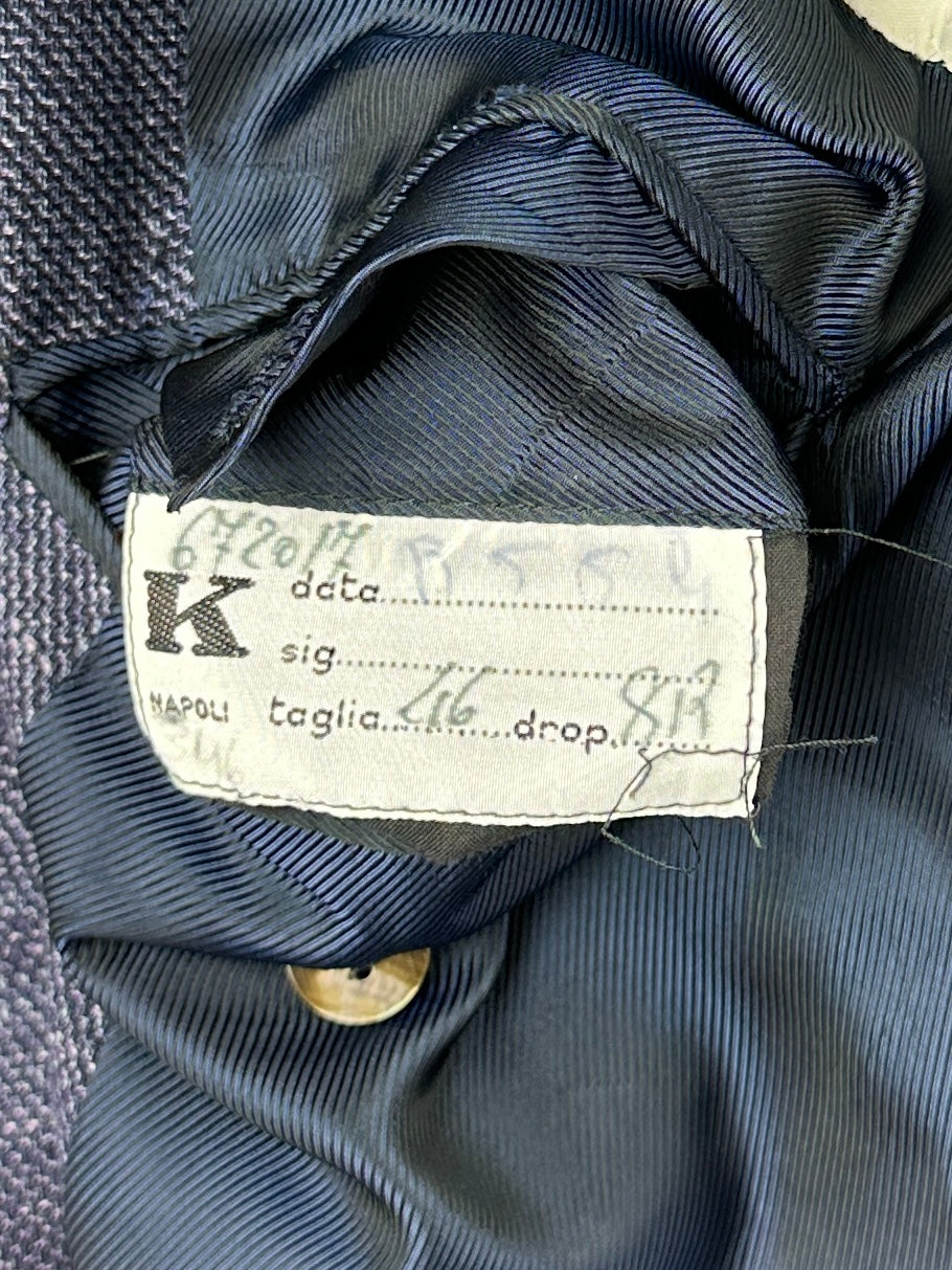 The ‘tre bottoni stirato a due’, also known as the three rolling on two lapel style, is perhaps the most infamous characteristic of the Neapolitan style jacket. The top button and buttonhole are ornamental, so are left unbuttoned. As the lapel rolls down it elegantly folds over the top button and stops just 4 cm above the second button creating the distinct roll of the lapel the style is known for. As it is intended to remain unbuttoned, the top buttonhole is actually made inside out so the beautiful side will still be visible.