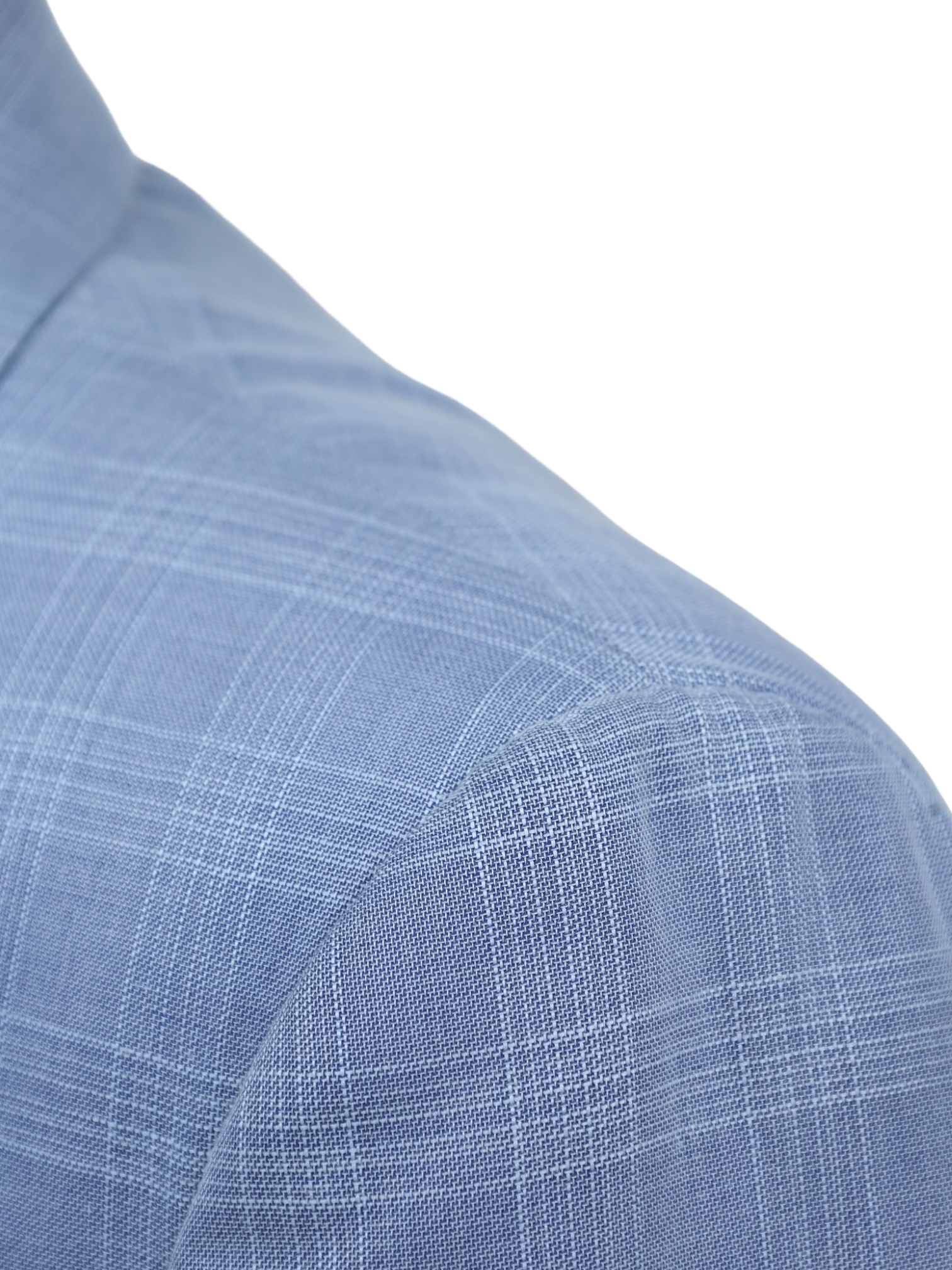 Spalla Camicia roughly translates to 'shirt sleeve' in Italian and is a shoulder style created and popularized by Neapolitan tailors. The name 'shirt sleeve' was so coined due to the characteristic shirring found at the sleeve's head where the fullness of the larger sleeve collapses. Rather than having the head of the sleeve turned back and stitched inside, the head is lapped under and stitched along the top.
