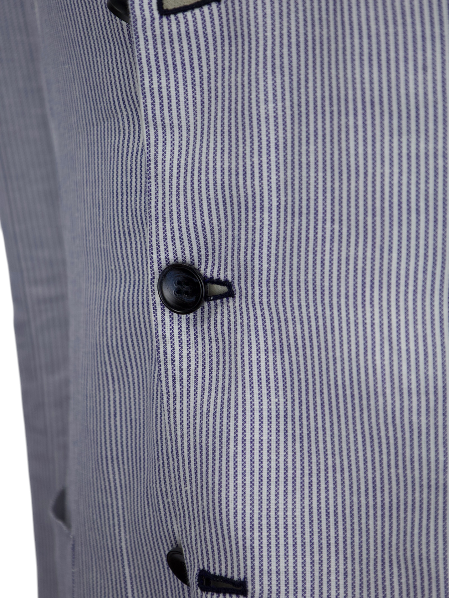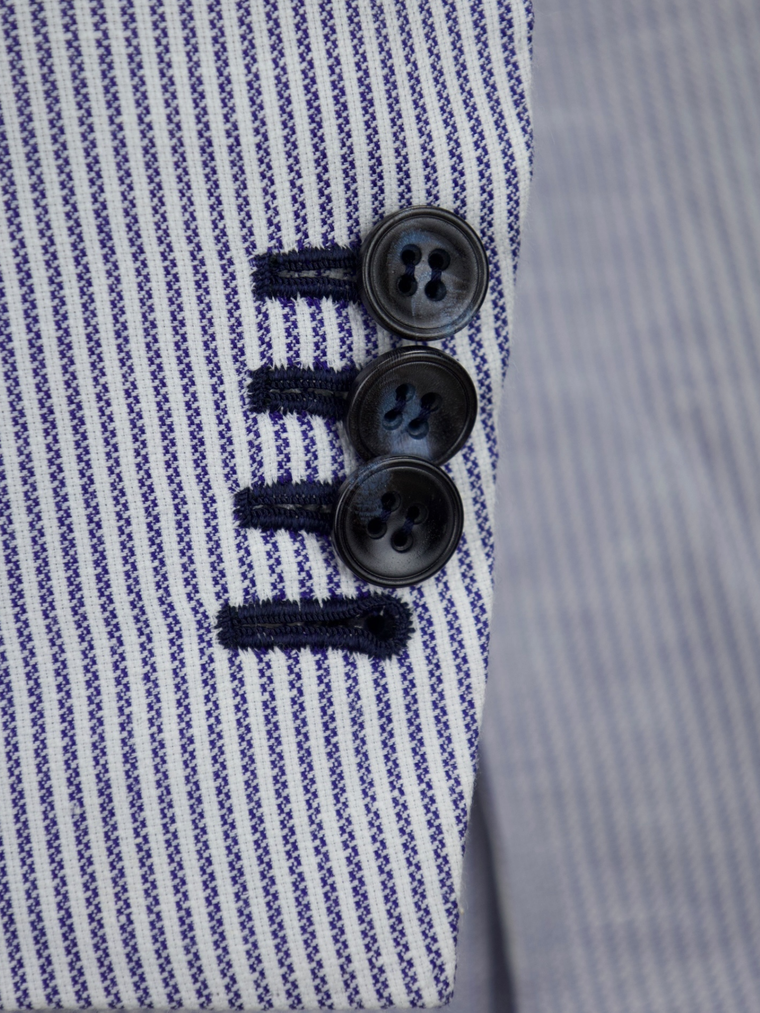 Also known as stacked buttons or waterfall buttons, kissing buttons are associated with Italian tailoring as Italian tailors make their jacket sleeve buttons in the kissing style. In this style, buttons touch each other and overlap one another. Handmade buttonholes; Even this step, apparently the simplest, is treated with an abundance of detail. Attaching the buttons is a job that requires patience and must be completed to perfection.