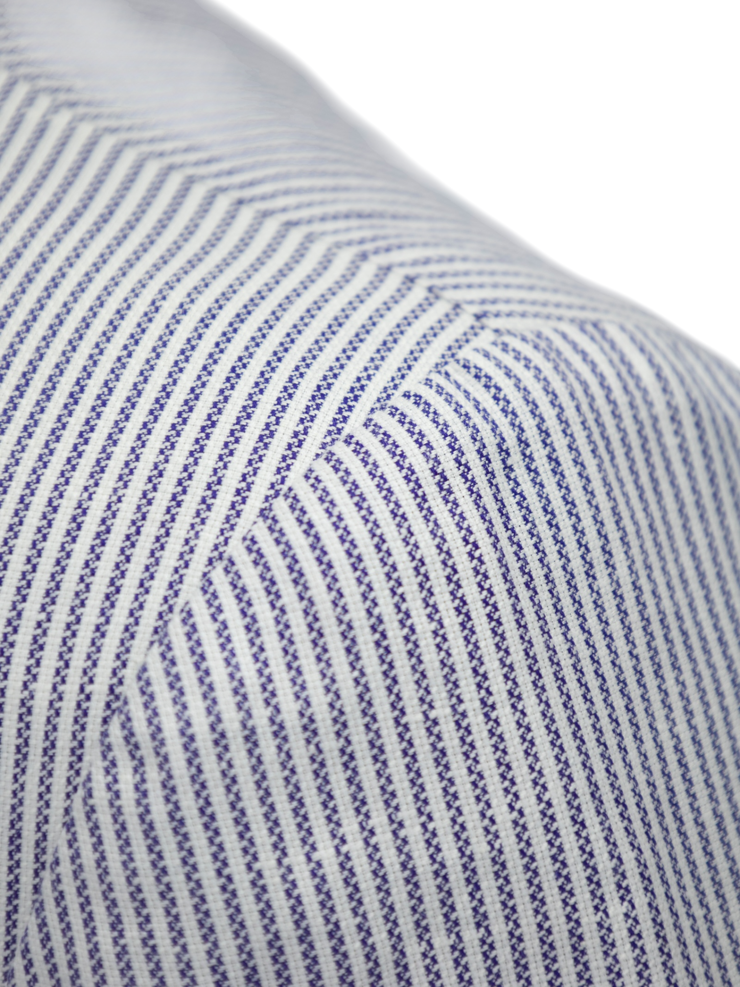 Spalla Camicia roughly translates to 'shirt sleeve' in Italian and is a shoulder style created and popularized by Neapolitan tailors. The name 'shirt sleeve' was so coined due to the characteristic shirring found at the sleeve's head where the fullness of the larger sleeve collapses. Rather than having the head of the sleeve turned back and stitched inside, the head is lapped under and stitched along the top.
