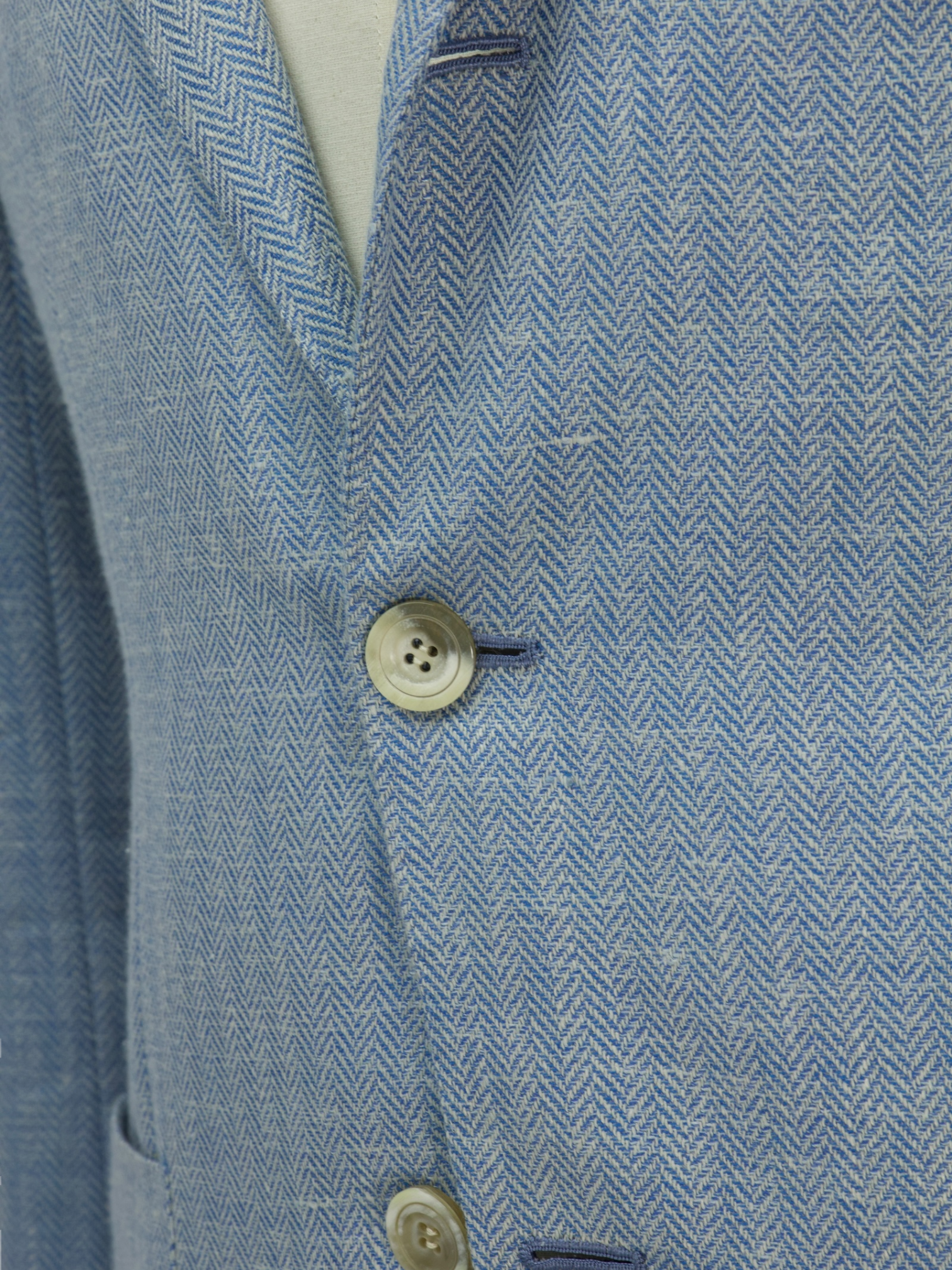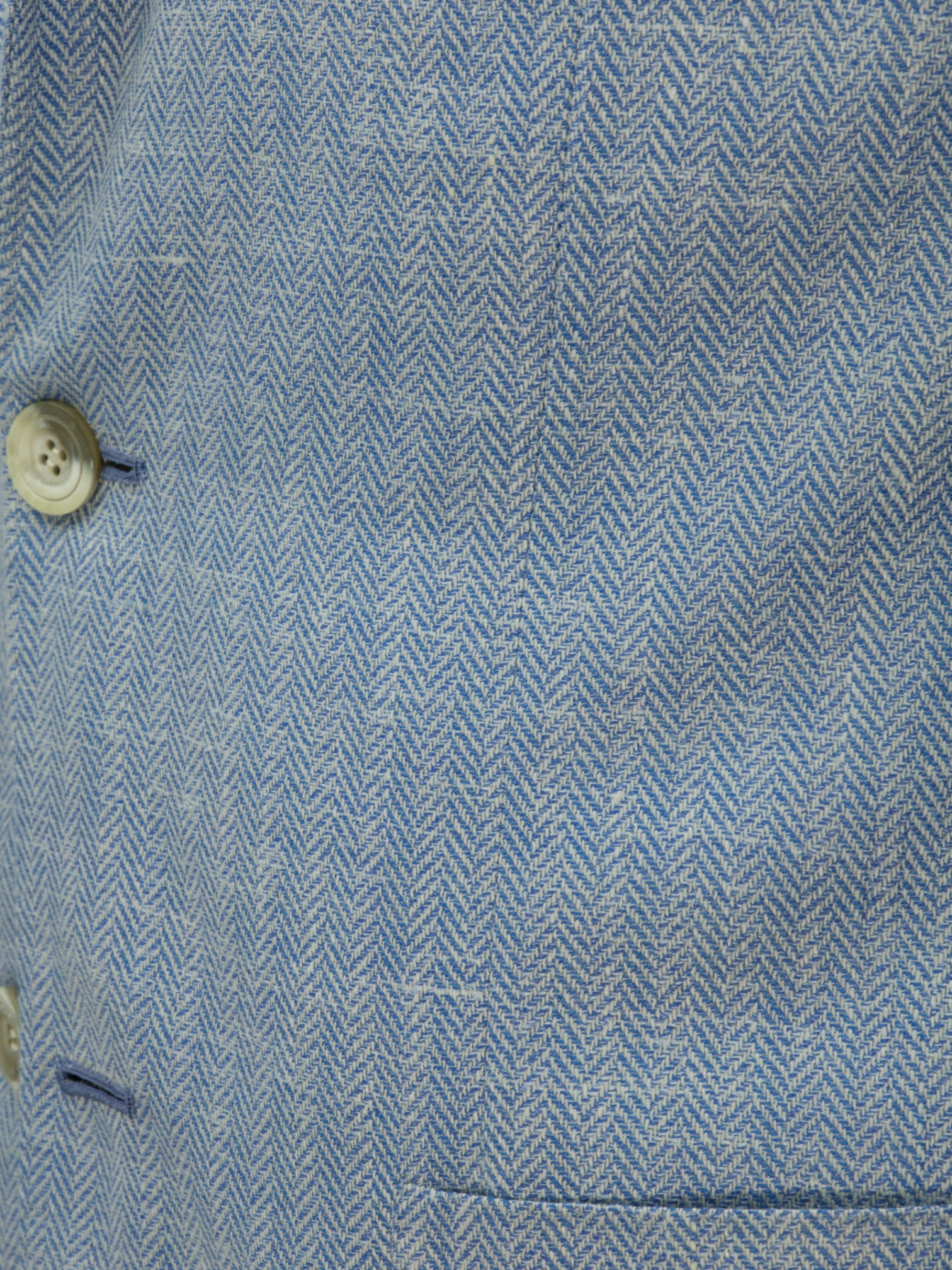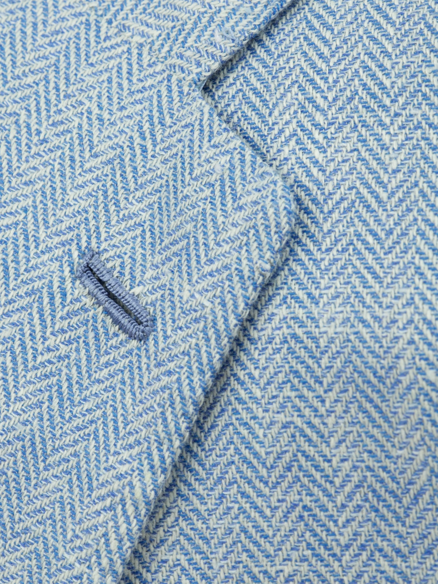 Kiton Light Blue Wool, Silk, Linen, Cashmere & Polyamide Herringbone Jacket