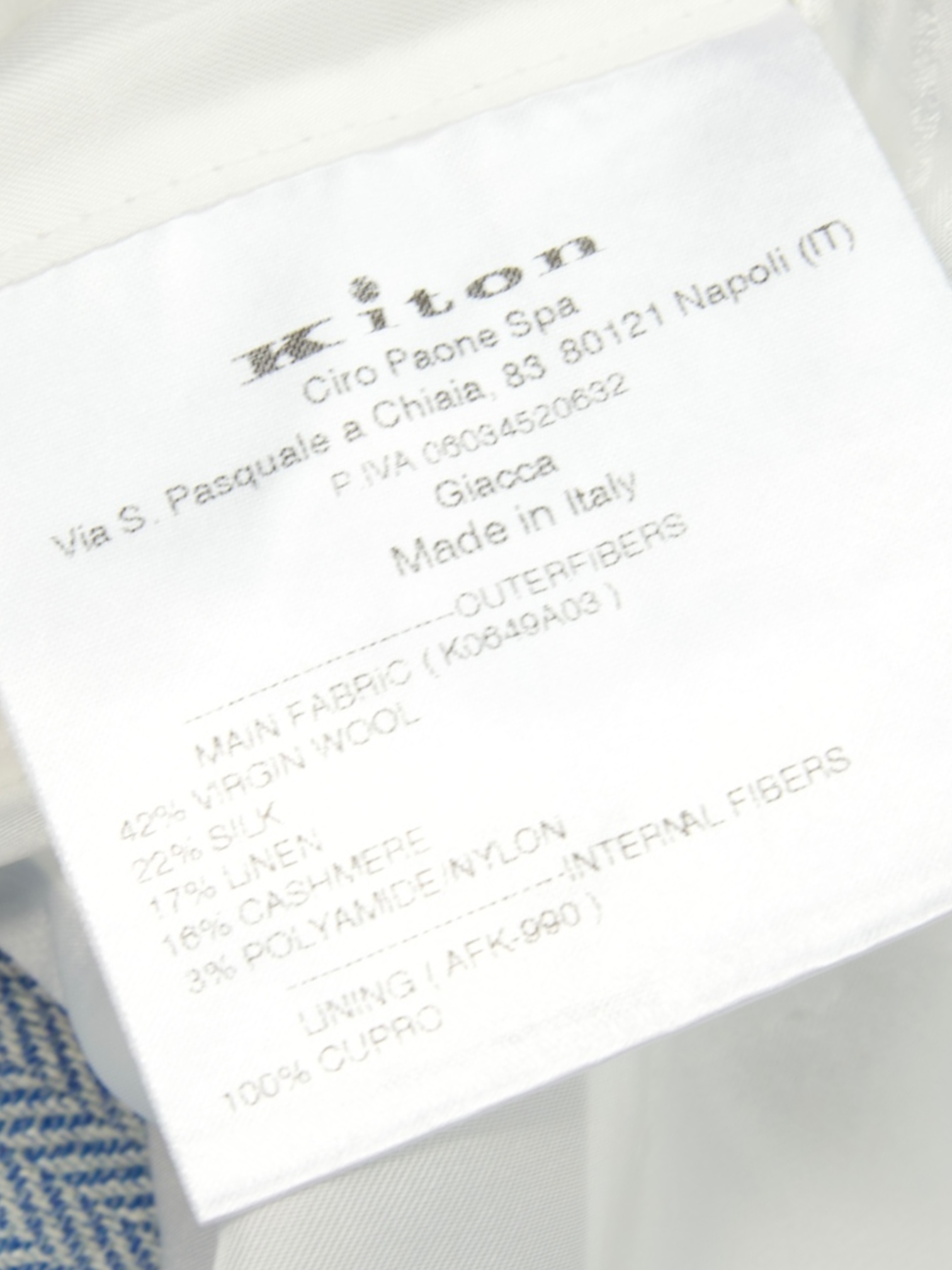 Discover the Kiton Light Blue Herringbone Jacket, an exquisite blend of luxury and craftsmanship. Crafted from a premium mix of wool, silk, linen, cashmere, and polyamide, this jacket offers a unique combination of softness, breathability, and durability. The light blue herringbone pattern adds a classic yet contemporary touch, making it a versatile choice for any season.