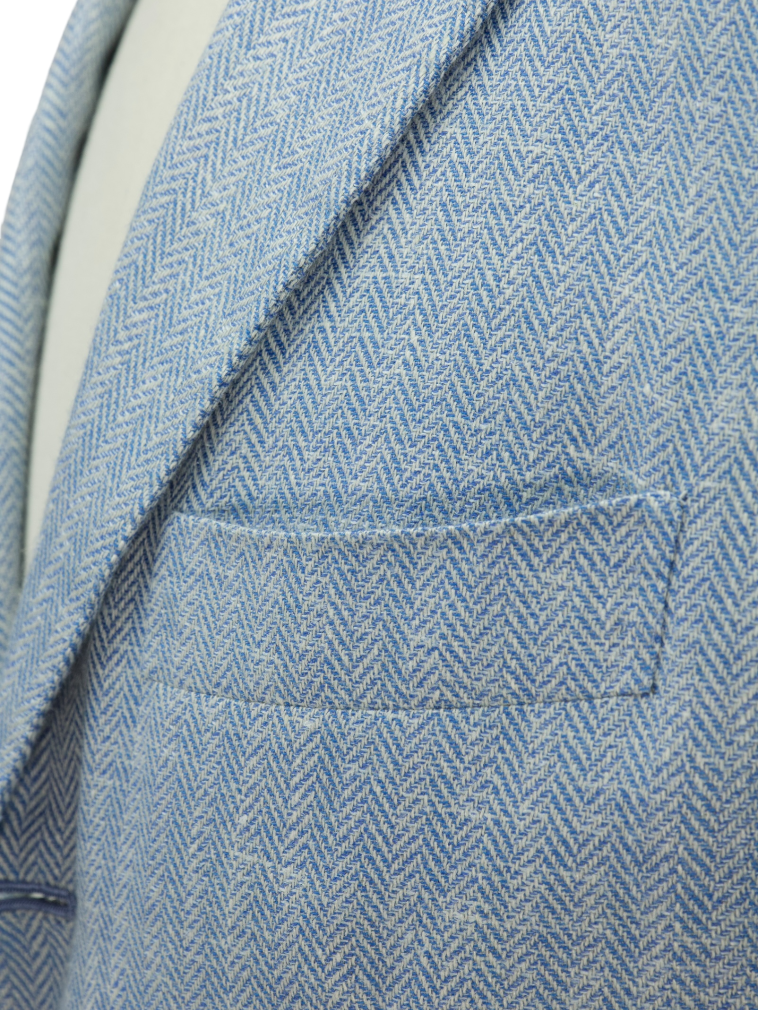 Ideal for the discerning gentleman, the Kiton Light Blue Herringbone Jacket is a timeless addition to any wardrobe, combining traditional tailoring with modern sophistication.