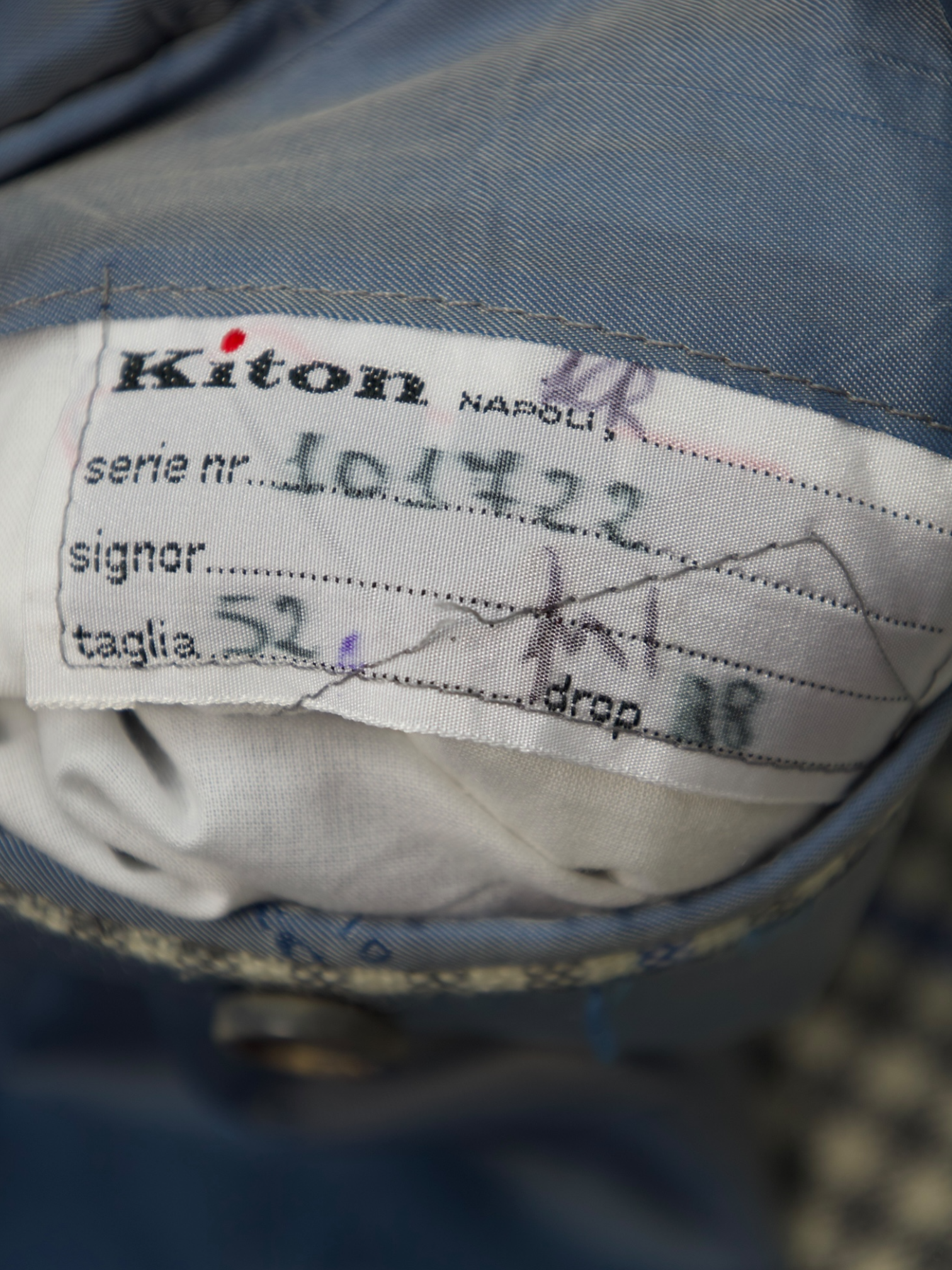 The "Lasa" fabric is a signature development by Kiton, known for its unique blend that offers a lightweight and breathable feel without sacrificing the luxurious softness and structure typically associated with fine tailoring. The combination of materials in this jacket provides a perfect balance of comfort, elegance, and durability, making it an ideal choice for any discerning gentleman.