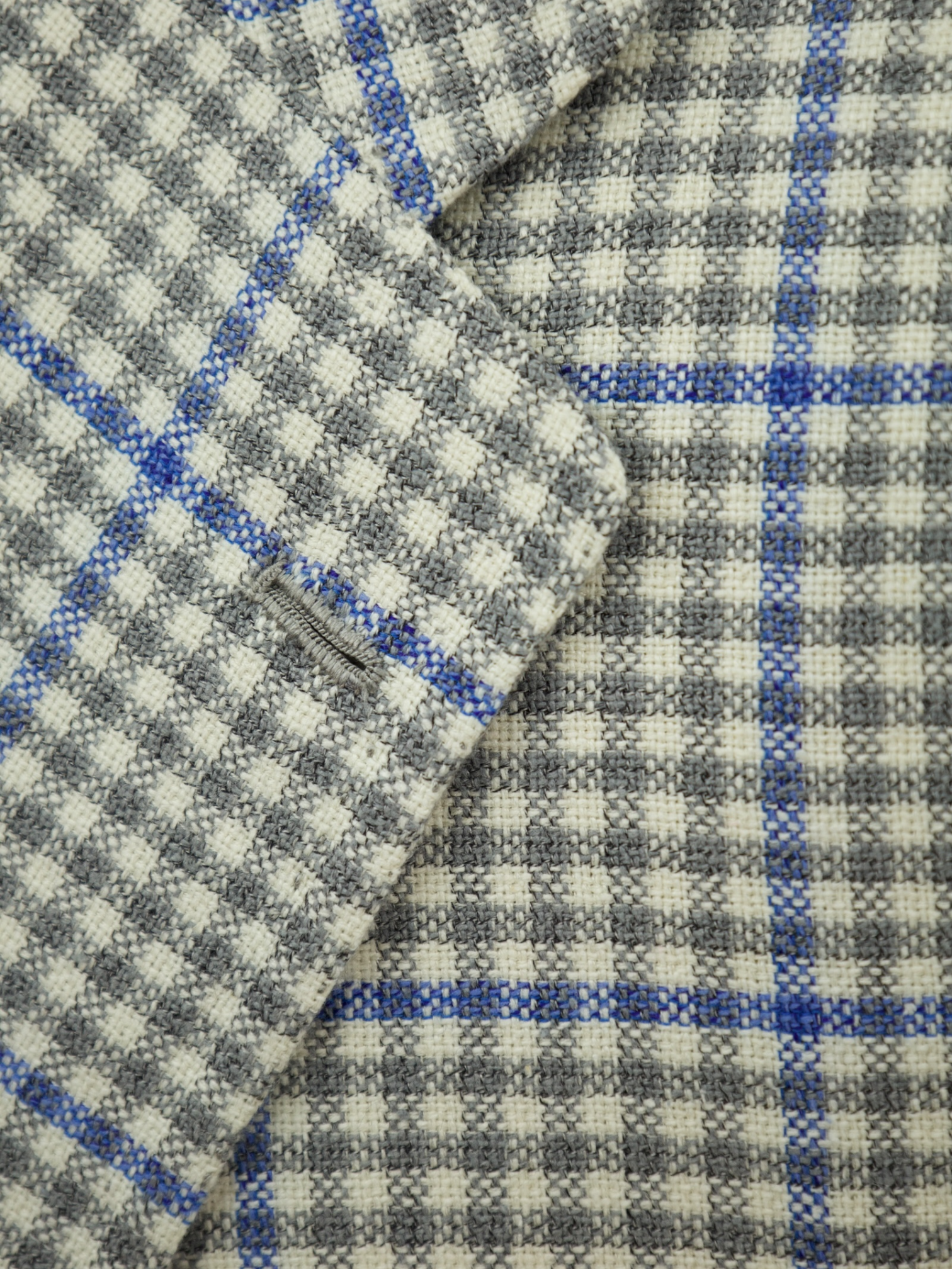 Kiton Light Grey Cashmere, Silk, Fleece Wool & Linen Overcheck "Lasa" Jacket