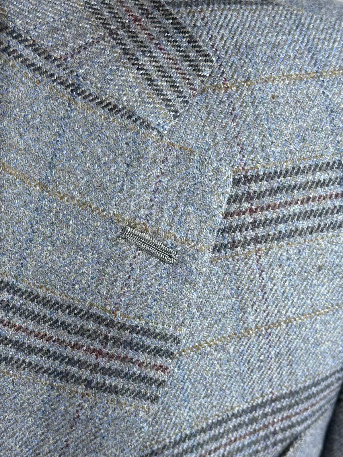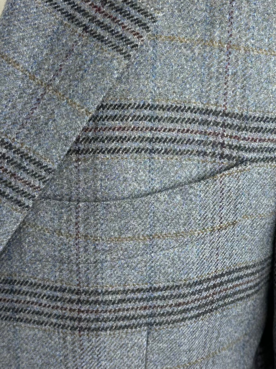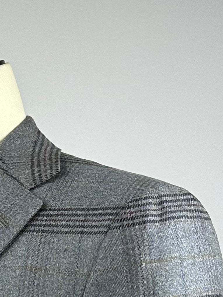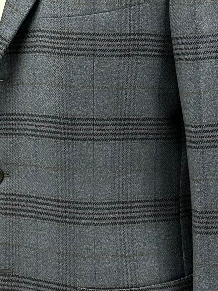 Handmade jacket in a glen plaid check pattern with a multicolor windowpane, which makes it unique. Notch lapels, fully lined, expertly constructed from a luxury wool & cashmere blend with double side vents at the back and two-button closure to keep the profile neat. The peak lapels and welted chest pocket are undeniably classic. Discover the elaborated sartorial details below.