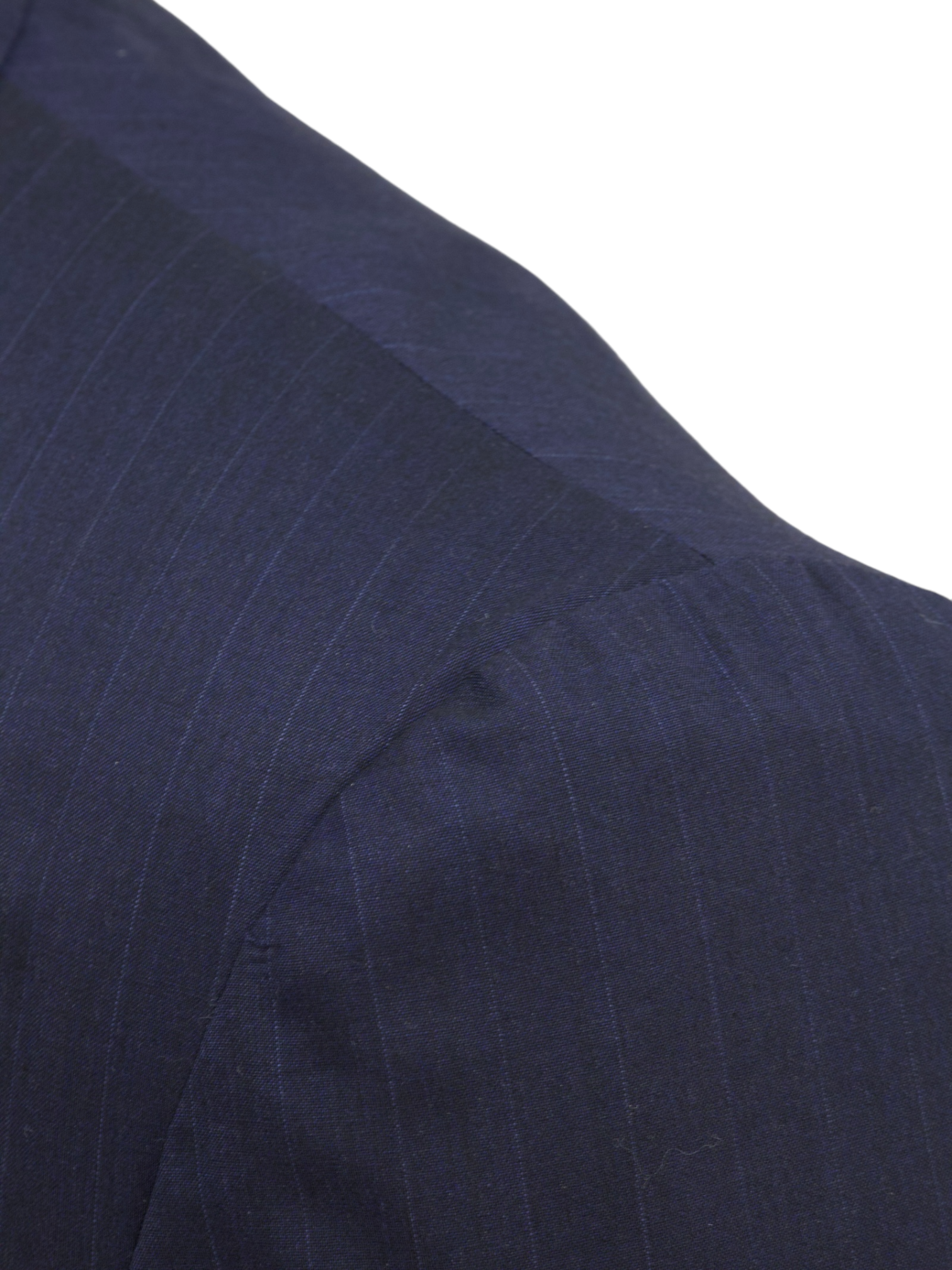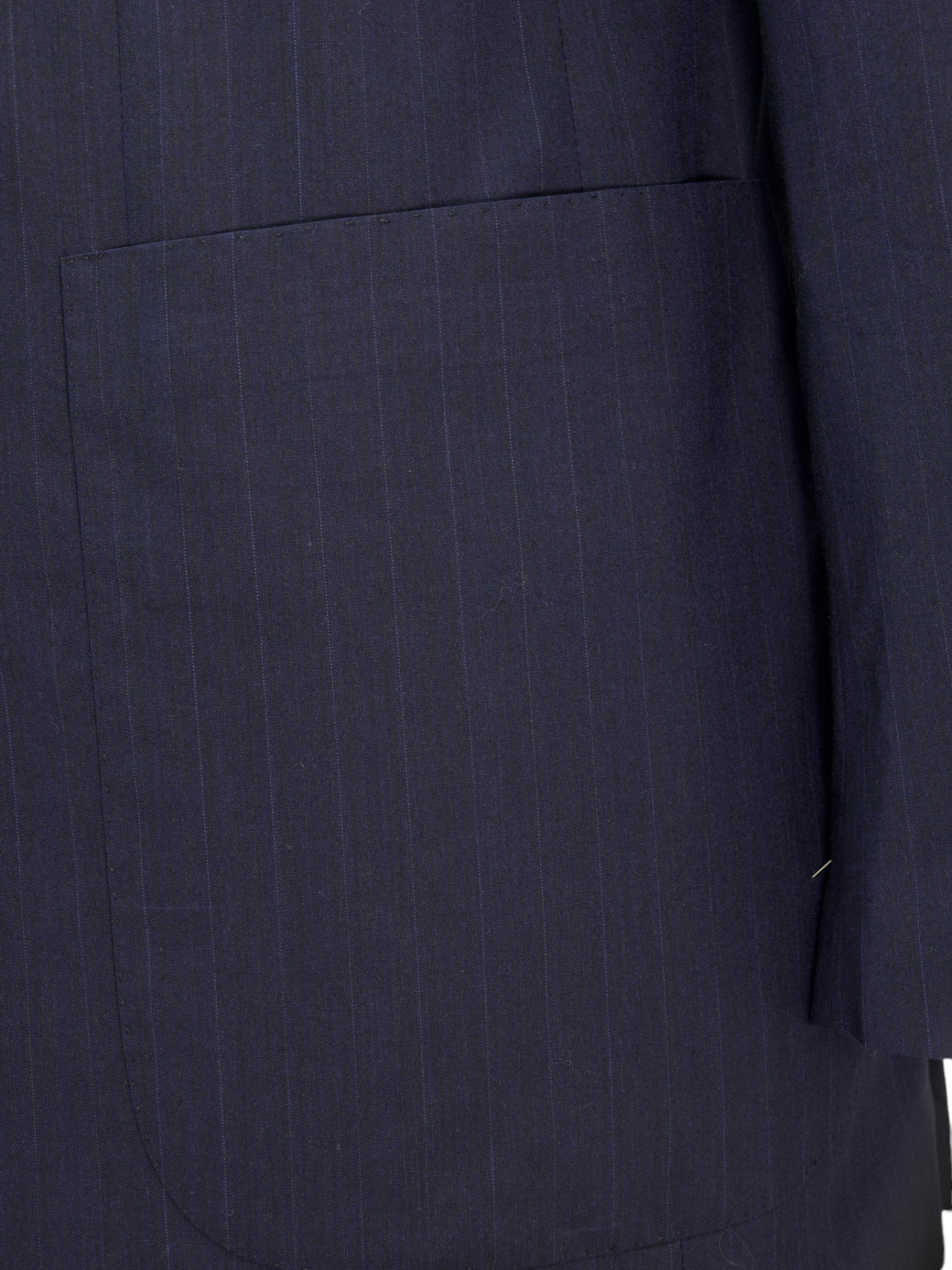 Discover the Kiton Navy 14-Micron Natural Stretch Pinstripe Suit, a pinnacle of sartorial luxury and innovation. This suit is crafted from ultra-fine 14-micron wool, equivalent to Super 180's, known for its exceptional softness, lightweight feel, and natural stretch properties. The fine pinstripe pattern adds a touch of classic elegance to the deep navy fabric, making it a timeless choice for both business and formal occasions.