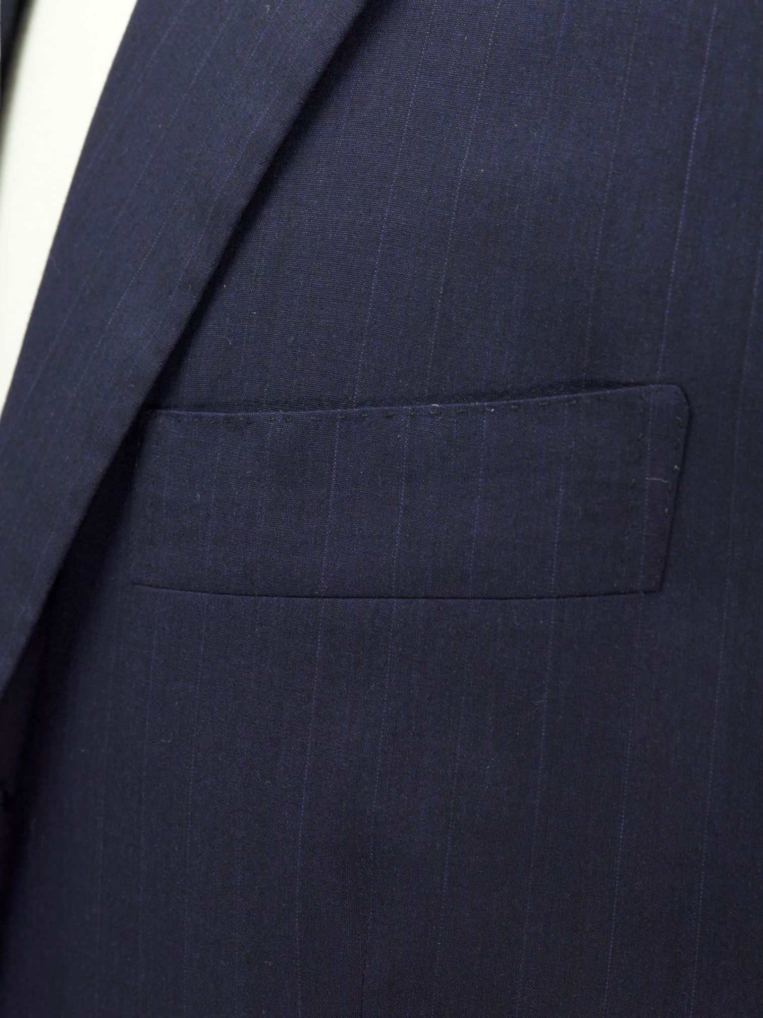 The barchetta pocket is often thought to be a tailoring detail exclusively from Italy. The word “barchetta” is Italian for “little boat.” It describes how the pocket floats on the chest, gently angled upwards, like the bow of a sailboat.