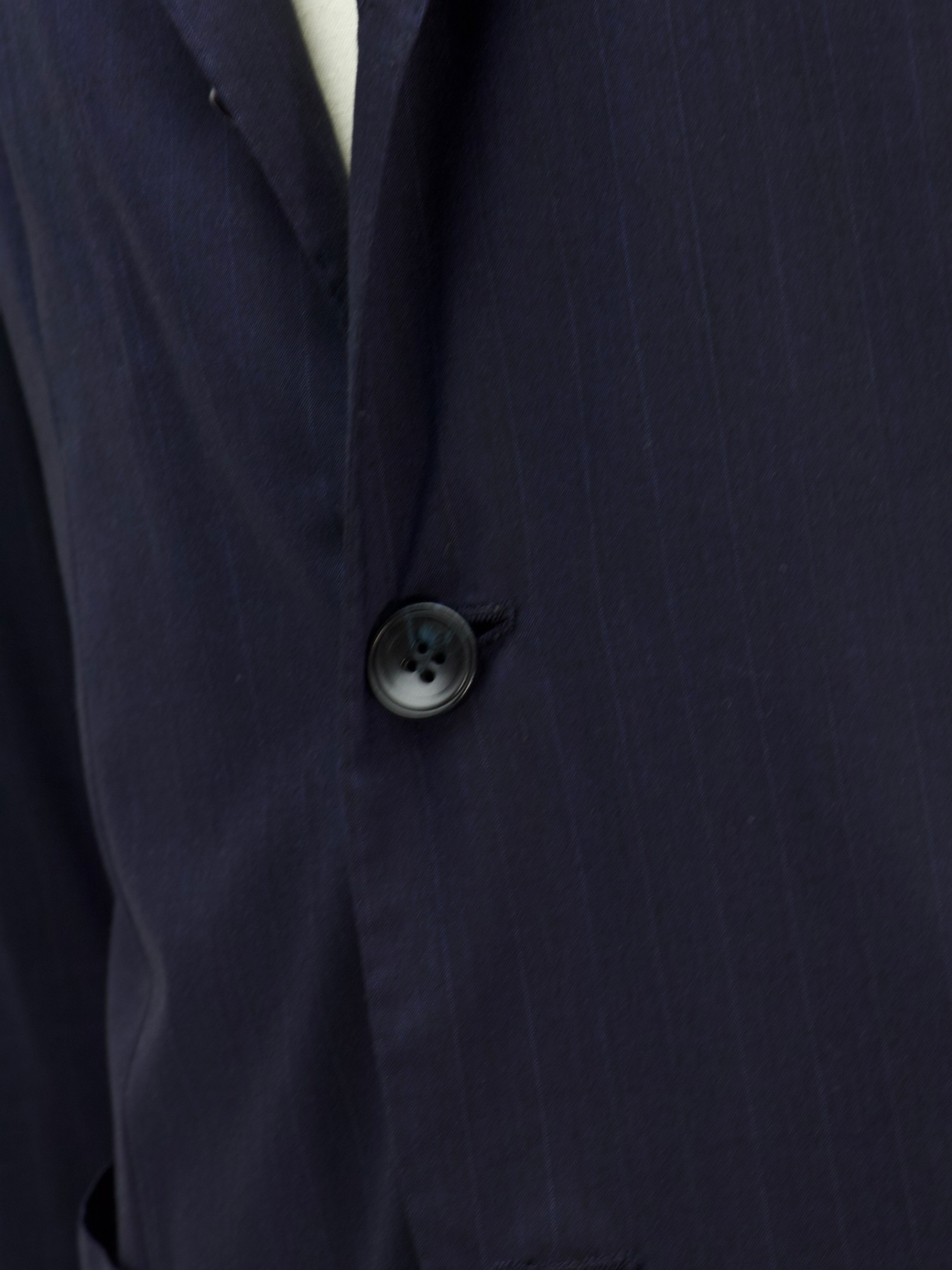 Also known as stacked buttons or waterfall buttons, kissing buttons are associated with Italian tailoring as Italian tailors make their jacket sleeve buttons in the kissing style. In this style, buttons touch each other and overlap one another. Handmade buttonholes; Even this step, apparently the simplest, is treated with an abundance of detail. Attaching the buttons is a job that requires patience and must be completed to perfection.