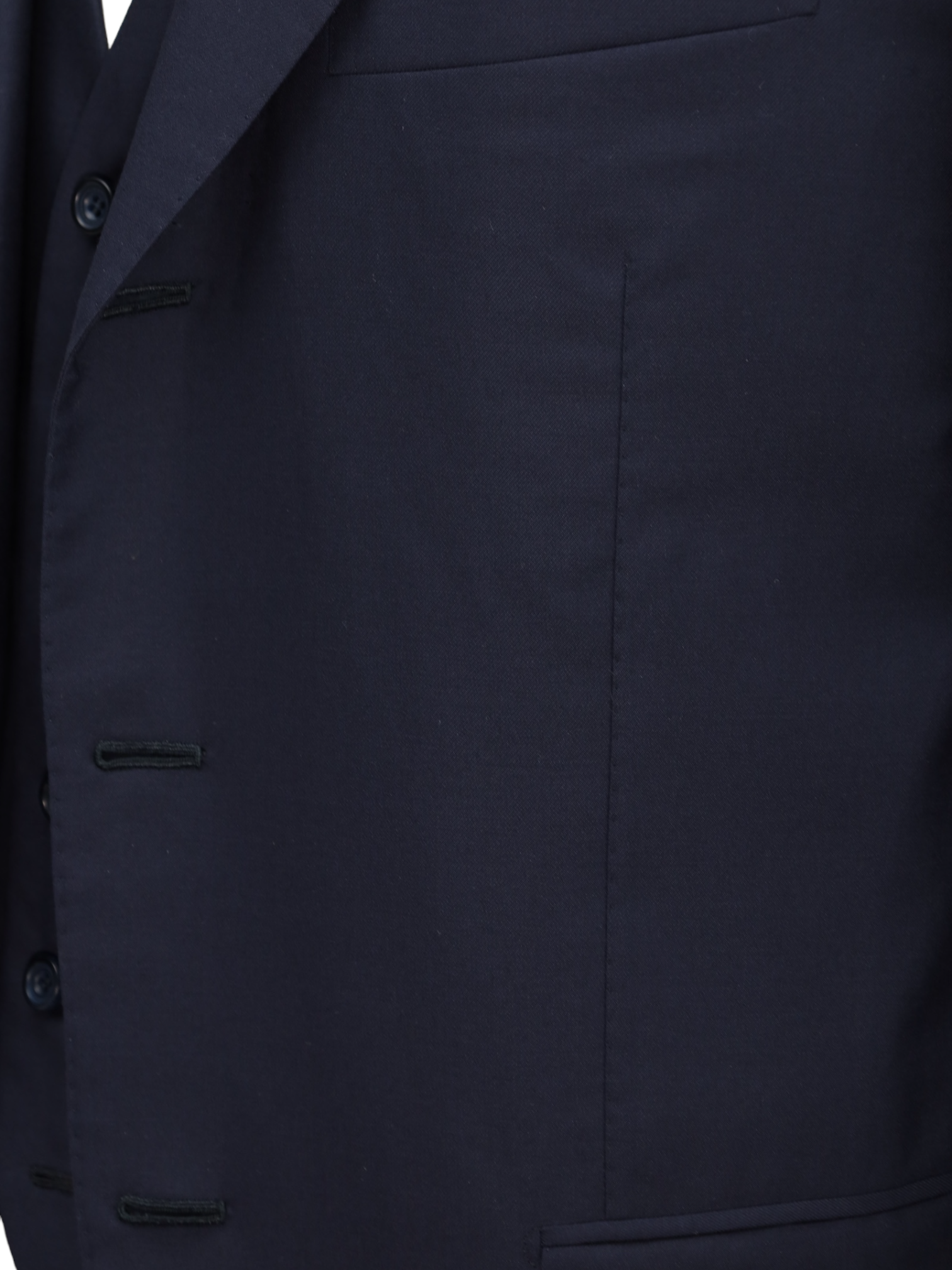 Also known as stacked buttons or waterfall buttons, kissing buttons are associated with Italian tailoring as Italian tailors make their jacket sleeve buttons in the kissing style. In this style, buttons touch each other and overlap one another. Handmade buttonholes; Even this step, apparently the simplest, is treated with an abundance of detail. Attaching the buttons is a job that requires patience and must be completed to perfection.
