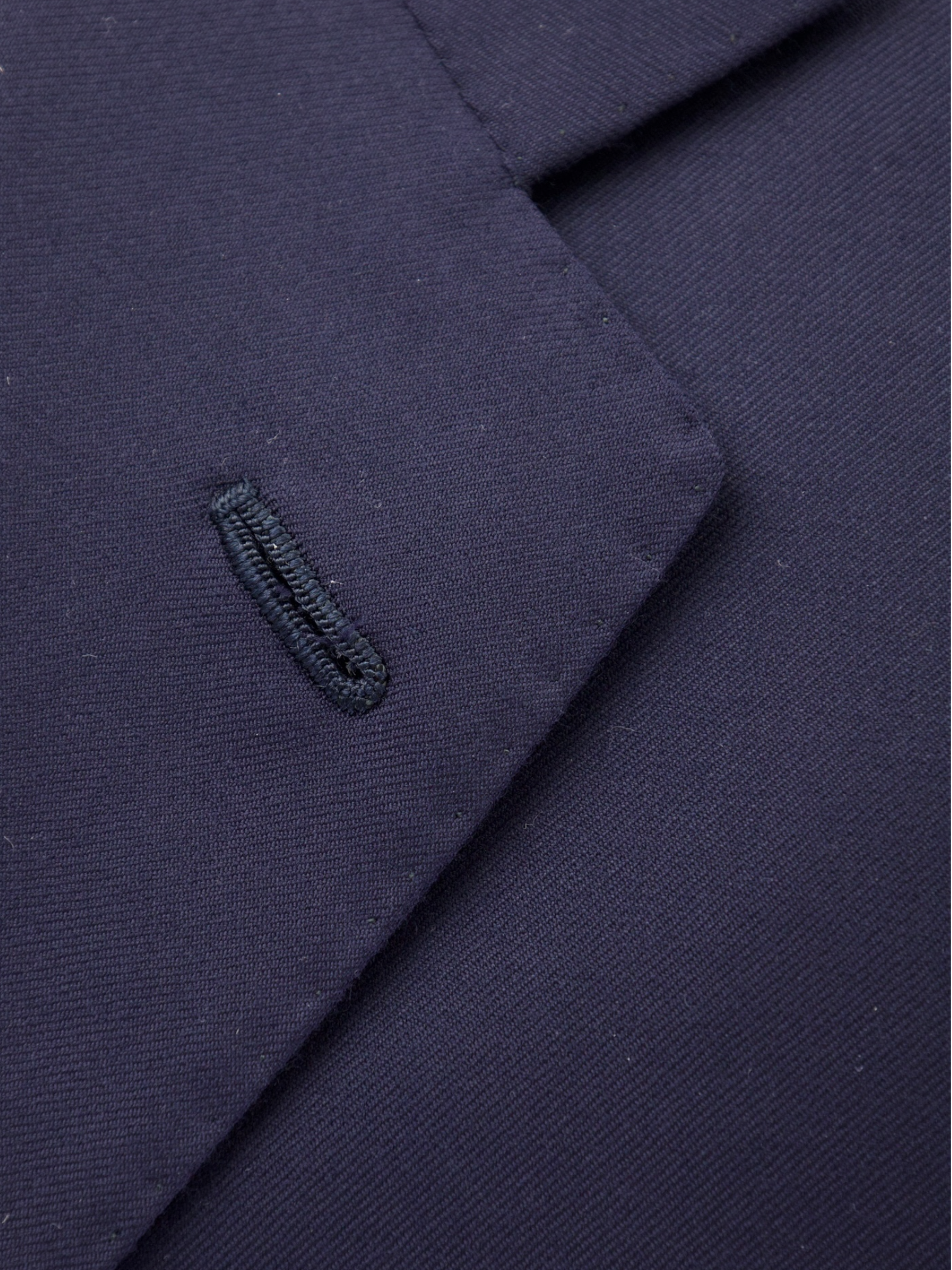 The ‘tre bottoni stirato a due’, also known as the three rolling on two lapel style, is perhaps the most infamous characteristic of the Neapolitan style jacket. The top button and buttonhole are ornamental, so are left unbuttoned. As the lapel rolls down it elegantly folds over the top button and stops just 4 cm above the second button creating the distinct roll of the lapel the style is known for. As it is intended to remain unbuttoned, the top buttonhole is actually made inside out so the beautiful side will still be visible.