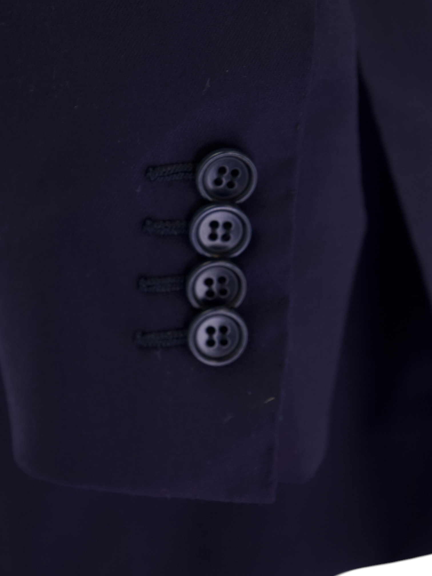 Also known as stacked buttons or waterfall buttons, kissing buttons are associated with Italian tailoring as Italian tailors make their jacket sleeve buttons in the kissing style. In this style, buttons touch each other and overlap one another. Handmade buttonholes; Even this step, apparently the simplest, is treated with an abundance of detail. Attaching the buttons is a job that requires patience and must be completed to perfection.
