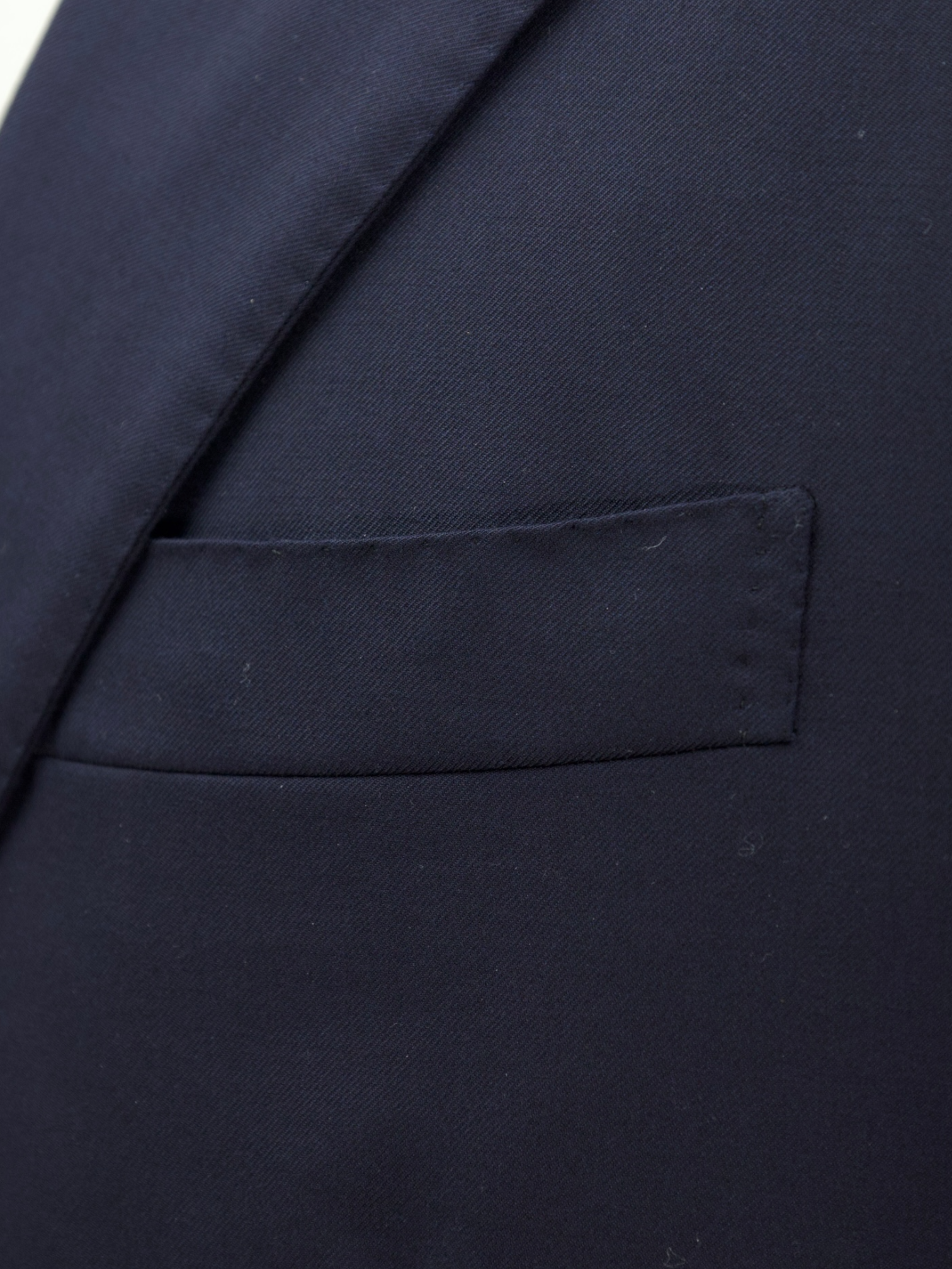 The barchetta pocket is often thought to be a tailoring detail exclusively from Italy. The word “barchetta” is Italian for “little boat.” It describes how the pocket floats on the chest, gently angled upwards, like the bow of a sailboat.