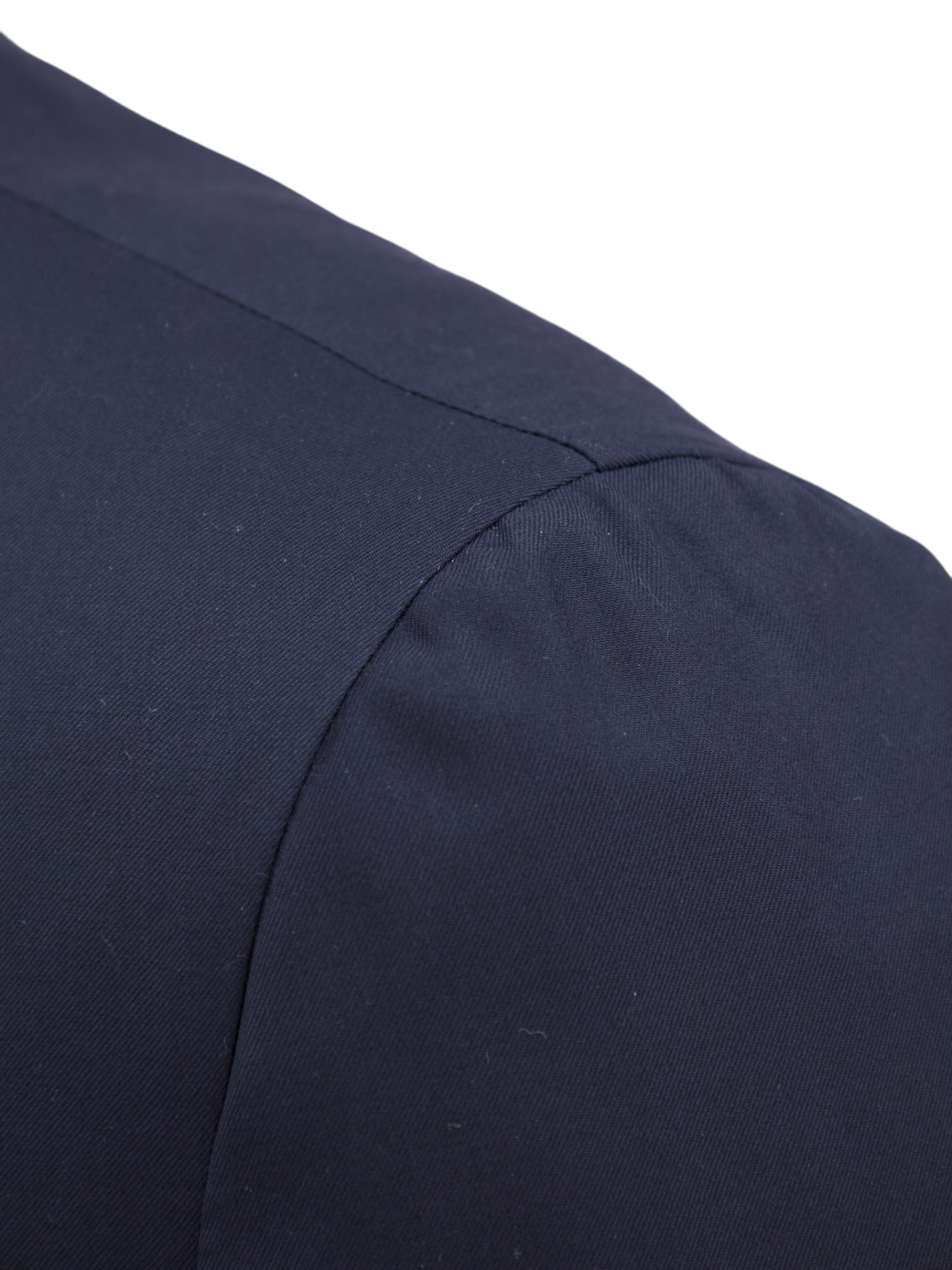 Spalla Camicia roughly translates to 'shirt sleeve' in Italian and is a shoulder style created and popularized by Neapolitan tailors. The name 'shirt sleeve' was so coined due to the characteristic shirring found at the sleeve's head where the fullness of the larger sleeve collapses. Rather than having the head of the sleeve turned back and stitched inside, the head is lapped under and stitched along the top.
