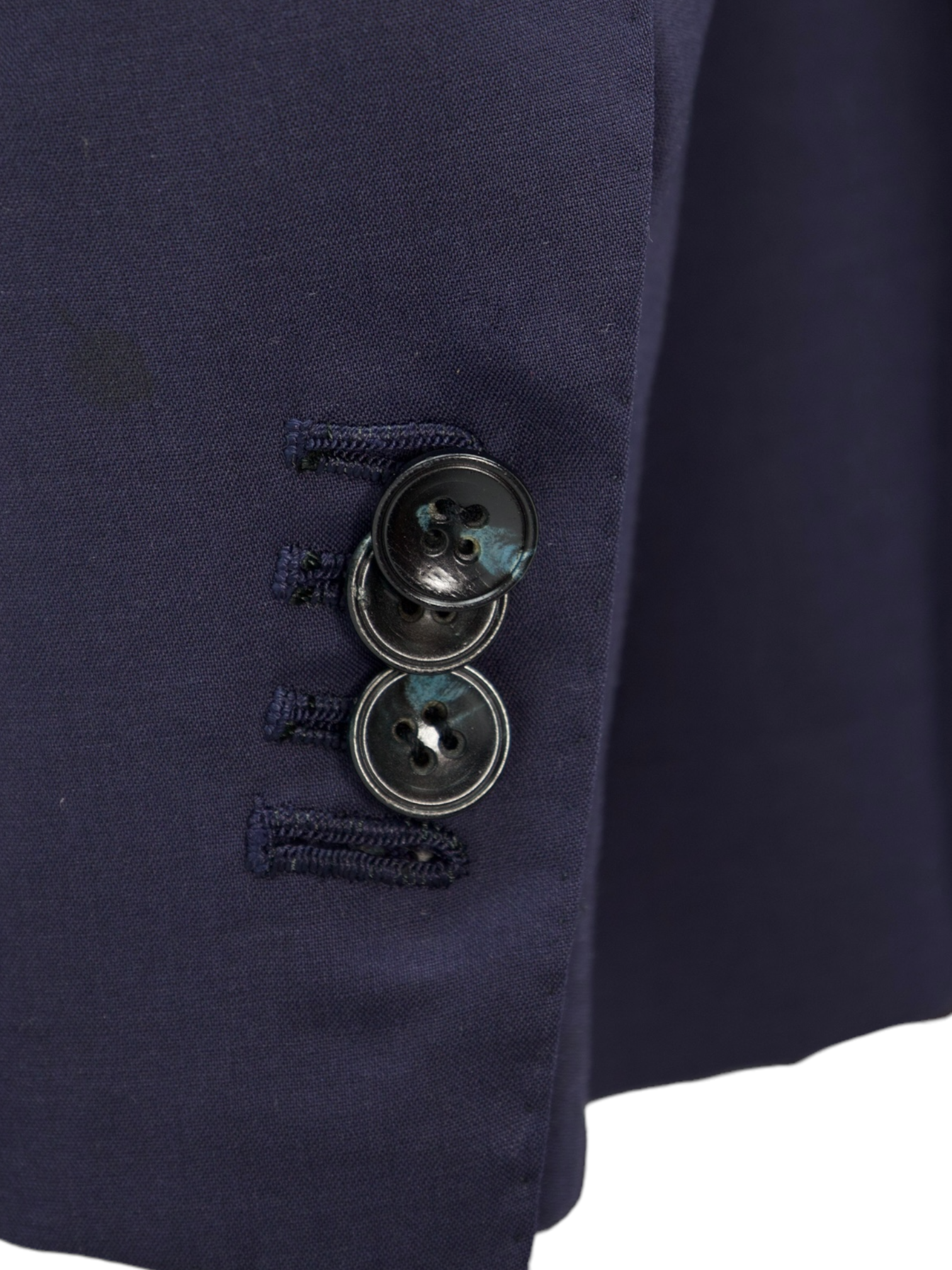 Also known as stacked buttons or waterfall buttons, kissing buttons are associated with Italian tailoring as Italian tailors make their jacket sleeve buttons in the kissing style. In this style, buttons touch each other and overlap one another. Handmade buttonholes; Even this step, apparently the simplest, is treated with an abundance of detail. Attaching the buttons is a job that requires patience and must be completed to perfection.