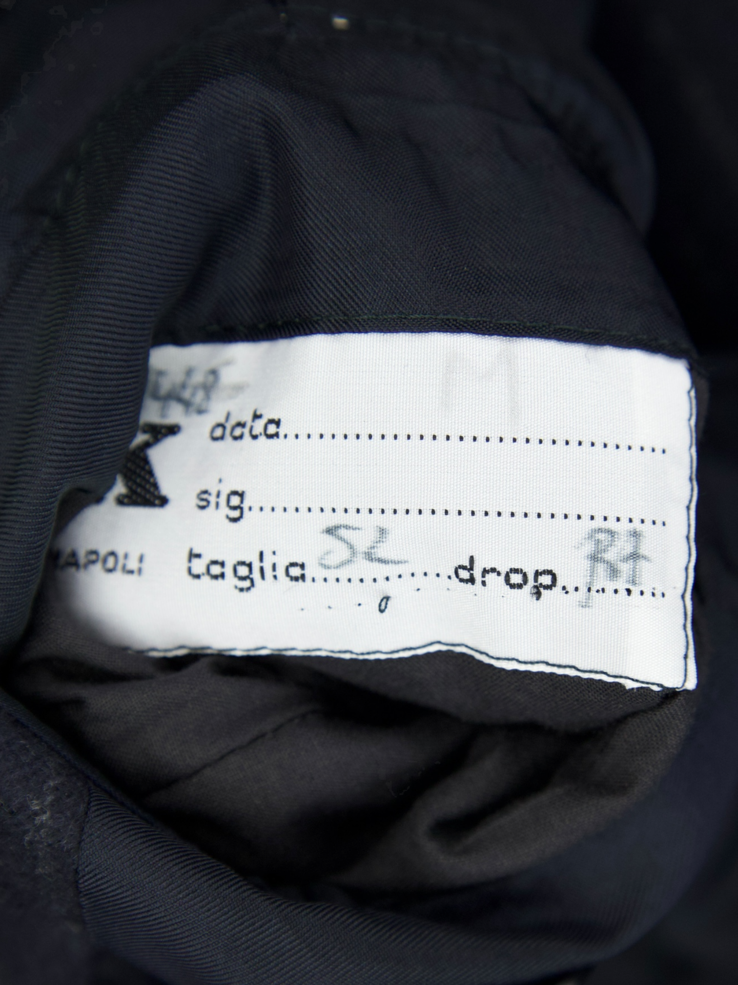 The ‘tre bottoni stirato a due’, also known as the three rolling on two lapel style, is perhaps the most infamous characteristic of the Neapolitan style jacket. The top button and buttonhole are ornamental, so are left unbuttoned. As the lapel rolls down it elegantly folds over the top button and stops just 4 cm above the second button creating the distinct roll of the lapel the style is known for. As it is intended to remain unbuttoned, the top buttonhole is actually made inside out so the beautiful side will still be visible.
