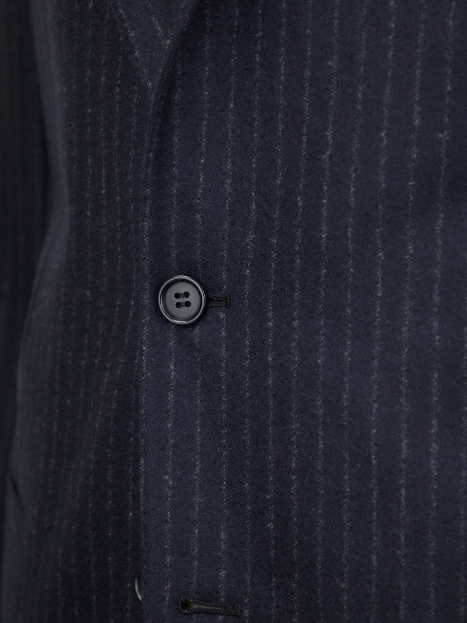 Also known as stacked buttons or waterfall buttons, kissing buttons are associated with Italian tailoring as Italian tailors make their jacket sleeve buttons in the kissing style. In this style, buttons touch each other and overlap one another. Handmade buttonholes; Even this step, apparently the simplest, is treated with an abundance of detail. Attaching the buttons is a job that requires patience and must be completed to perfection.