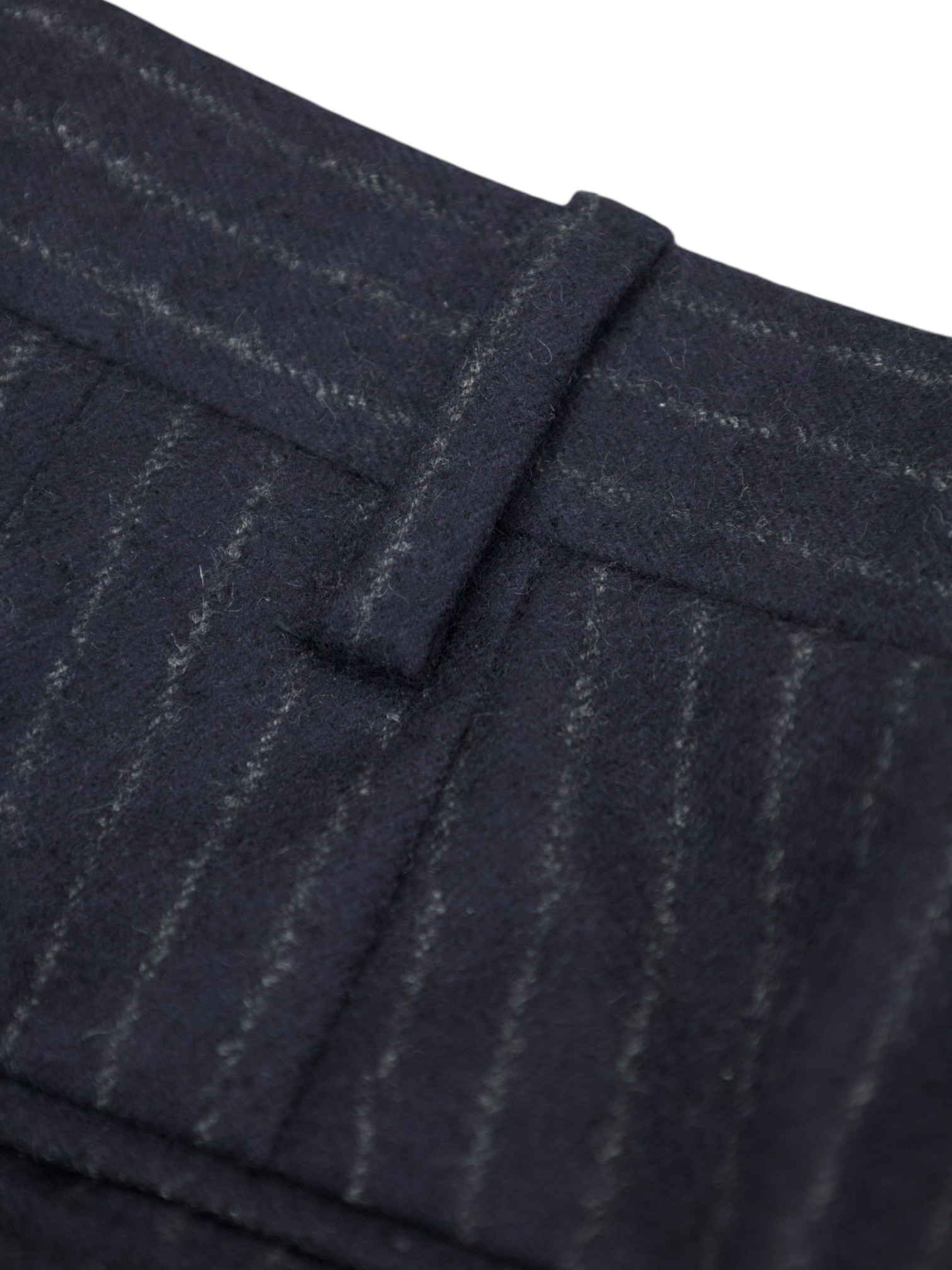 Discover the Kiton Navy & Light Blue Pure Cashmere Pinstripe Suit—an exquisite statement of refined taste and effortless sophistication. Cut from supremely soft pure cashmere, this suit drapes like a second skin, offering unmatched comfort with a polished edge. The deep navy base, subtly accented by light blue pinstripes, strikes the perfect balance between classic and contemporary. Notch lapels, a fully lined interior, and a structured yet natural shoulder define the jacket’s sharp silhouette, while the pleated trousers with turn-ups add a touch of relaxed elegance. Whether in the boardroom or at an exclusive soirée, this is a suit for those who understand true luxury.