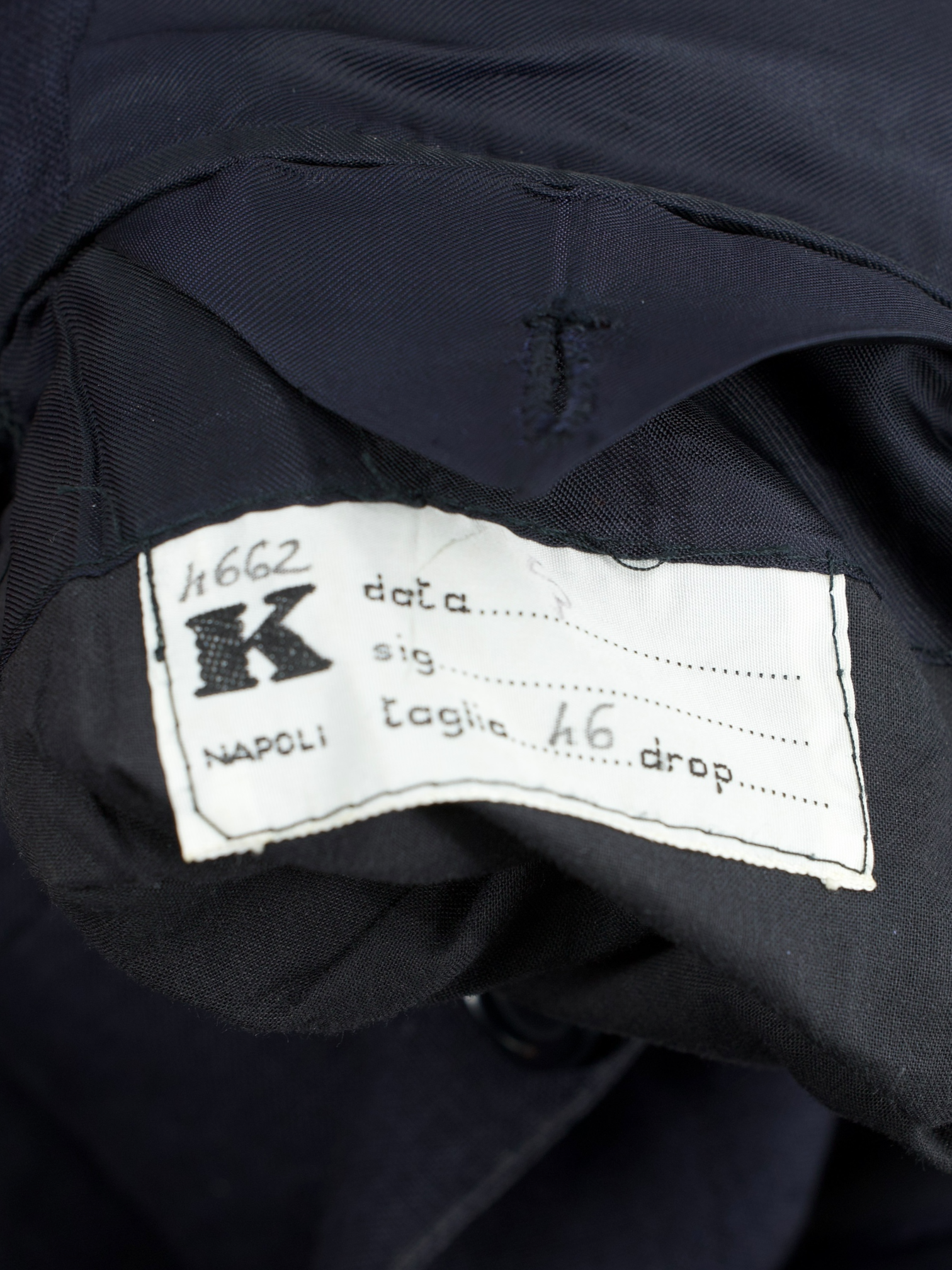 The ‘tre bottoni stirato a due’, also known as the three rolling on two lapel style, is perhaps the most infamous characteristic of the Neapolitan style jacket. The top button and buttonhole are ornamental, so are left unbuttoned. As the lapel rolls down it elegantly folds over the top button and stops just 4 cm above the second button creating the distinct roll of the lapel the style is known for. As it is intended to remain unbuttoned, the top buttonhole is actually made inside out so the beautiful side will still be visible.