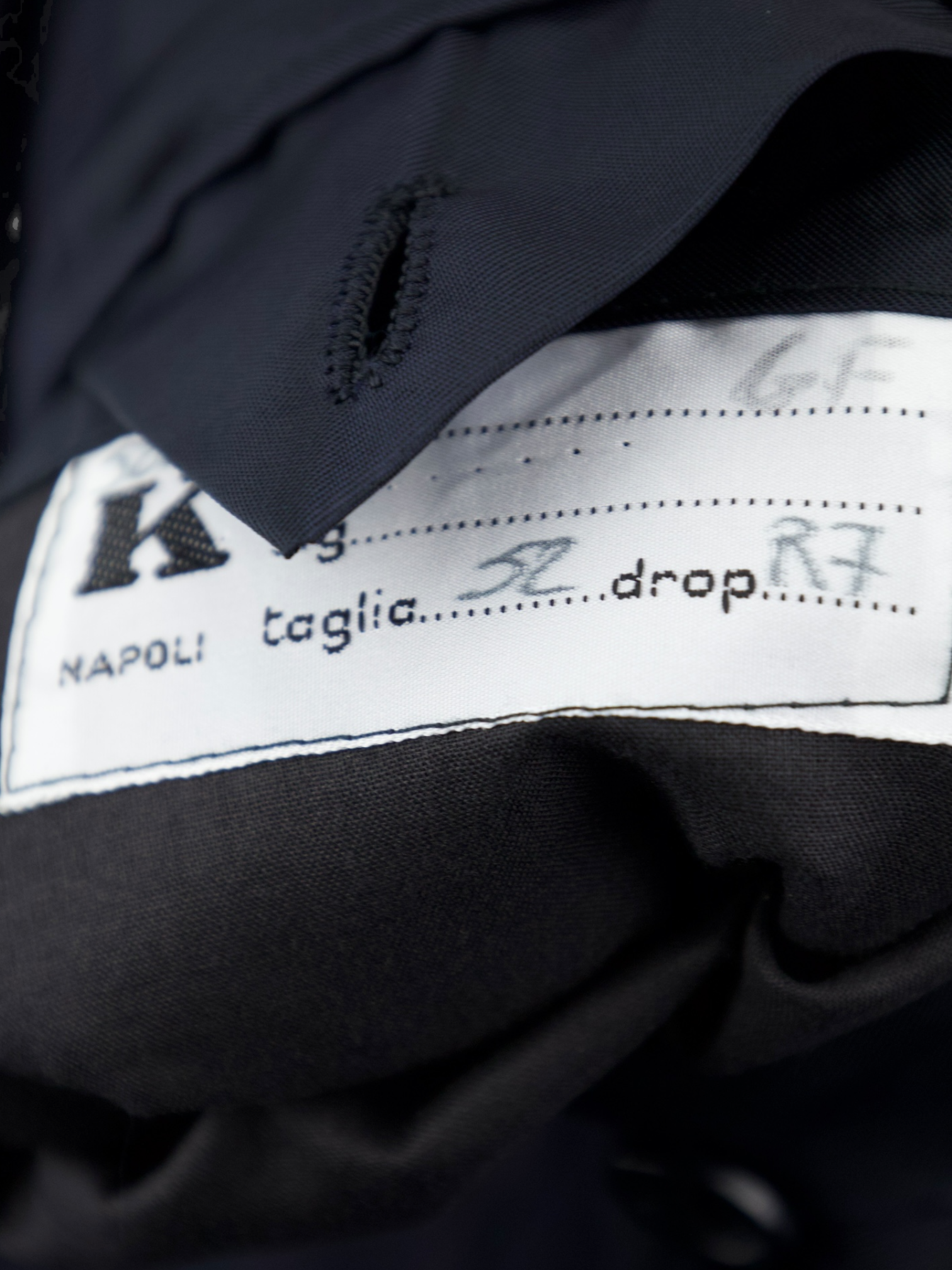 Kiton’s master tailors add two darts - think of them as pinched seams - to ensure the jacket’s body achieves a slim silhouette. The process, called mezzo punto riprese, is done entirely by hand.