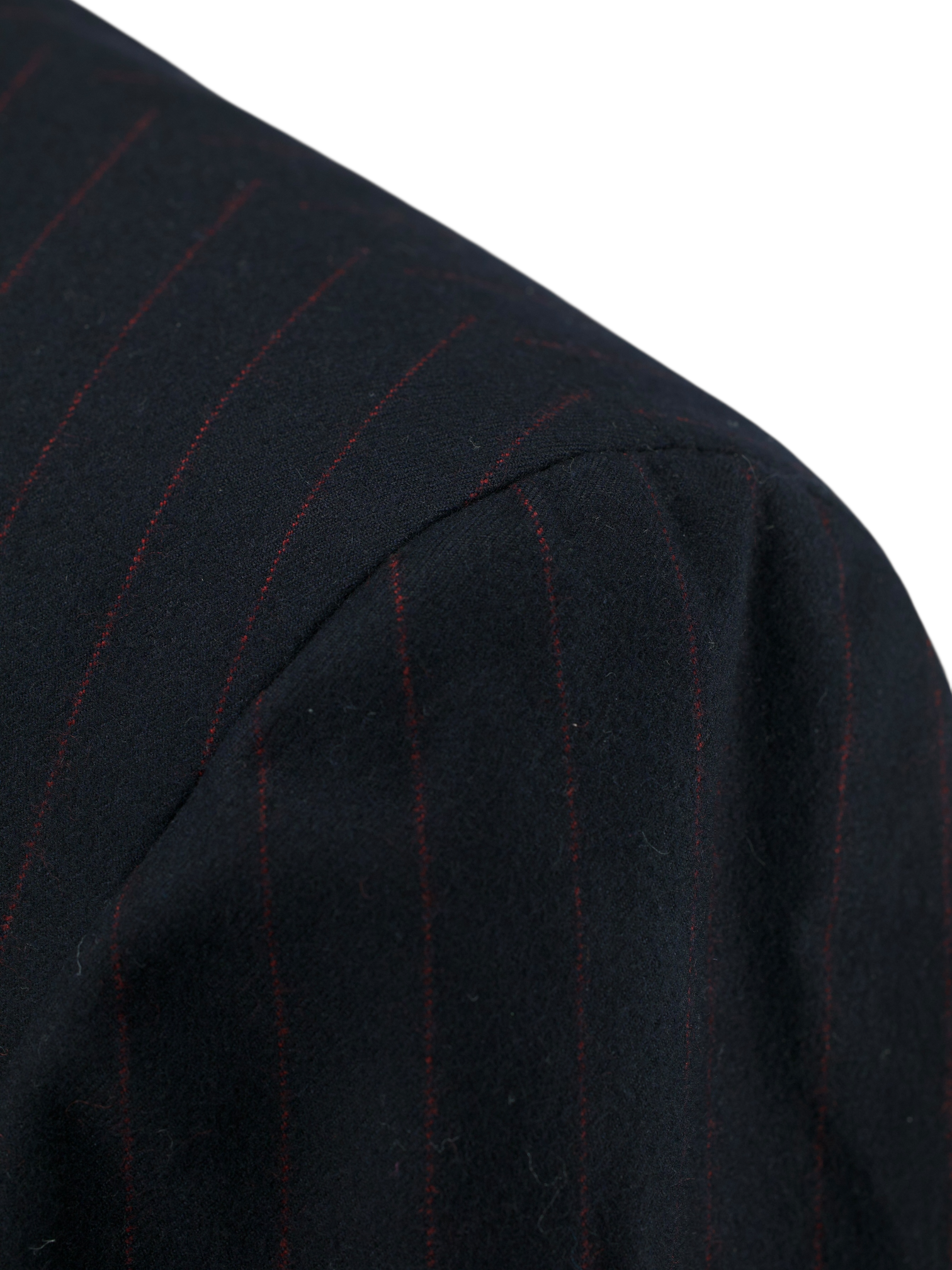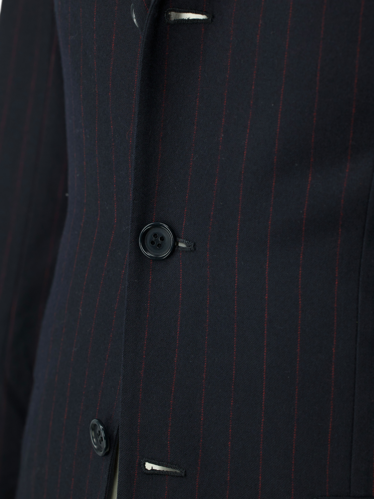 Handcrafted in Naples by master artisans, this suit reflects Kiton’s uncompromising pursuit of excellence. Each stage of construction is entrusted to specialists, with extensive hand stitching ensuring flexibility, comfort, and a naturally fluid drape. The handmade buttonholes are executed with meticulous precision, a subtle but telling mark of true sartorial quality. From the careful alignment of the pinstripes to the final pressing, every detail is handled with patience and expertise, resulting in a garment that embodies the depth, softness, and quiet authority synonymous with Kiton. Discover the elaborated sartorial details below.