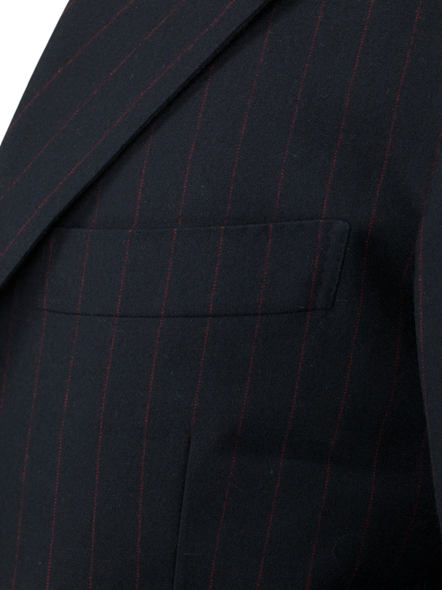 The barchetta pocket is often thought to be a tailoring detail exclusively from Italy. The word “barchetta” is Italian for “little boat.” It describes how the pocket floats on the chest, gently angled upwards, like the bow of a sailboat.
