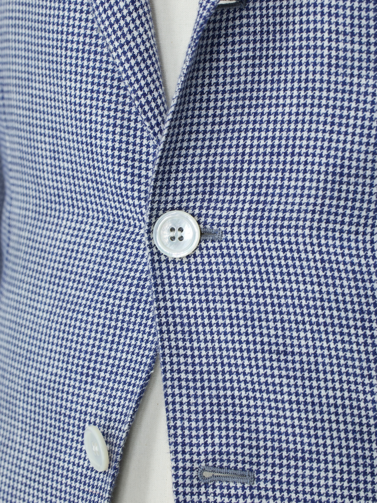 Also known as stacked buttons or waterfall buttons, kissing buttons are associated with Italian tailoring as Italian tailors make their jacket sleeve buttons in the kissing style. In this style, buttons touch each other and overlap one another. Handmade buttonholes; Even this step, apparently the simplest, is treated with an abundance of detail. Attaching the buttons is a job that requires patience and must be completed to perfection.
