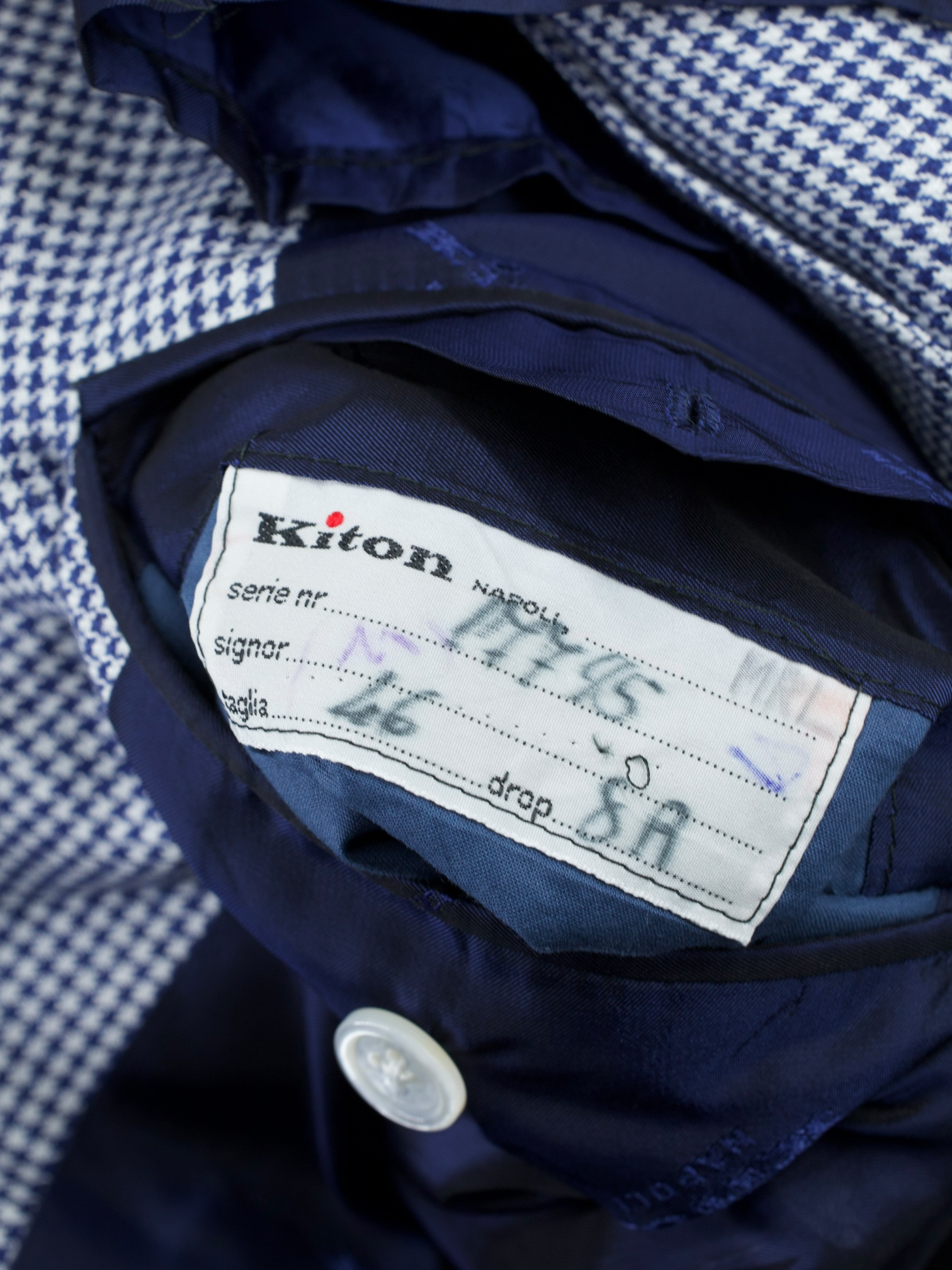 Kiton Navy & White Pure Linen Pied de Poule Jacket