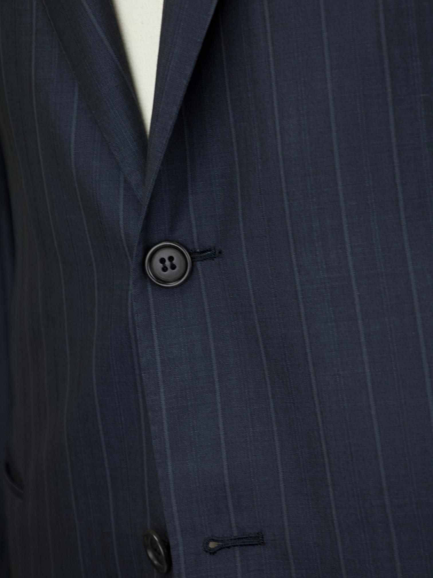 Also known as stacked buttons or waterfall buttons, kissing buttons are associated with Italian tailoring as Italian tailors make their jacket sleeve buttons in the kissing style. In this style, buttons touch each other and overlap one another. Handmade buttonholes; Even this step, apparently the simplest, is treated with an abundance of detail. Attaching the buttons is a job that requires patience and must be completed to perfection.