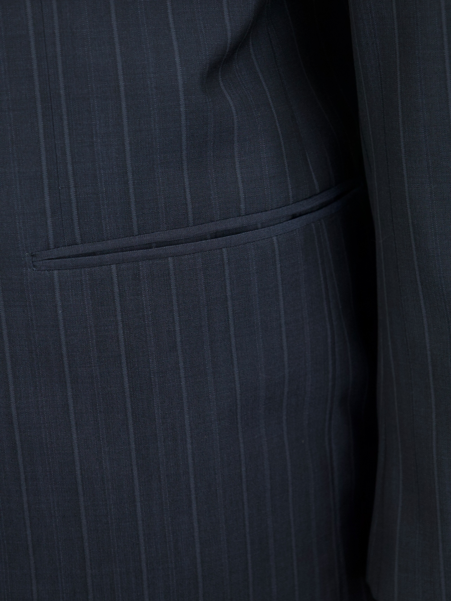 The first jacket pockets were sewn inside the lining or seams of garments, and are called “jetted” pockets. In their simplest form, they consist of little more than a slit. Suits that are the most formal, especially tuxedos, have no flap pockets altogether to give the piece a more streamlined look.
