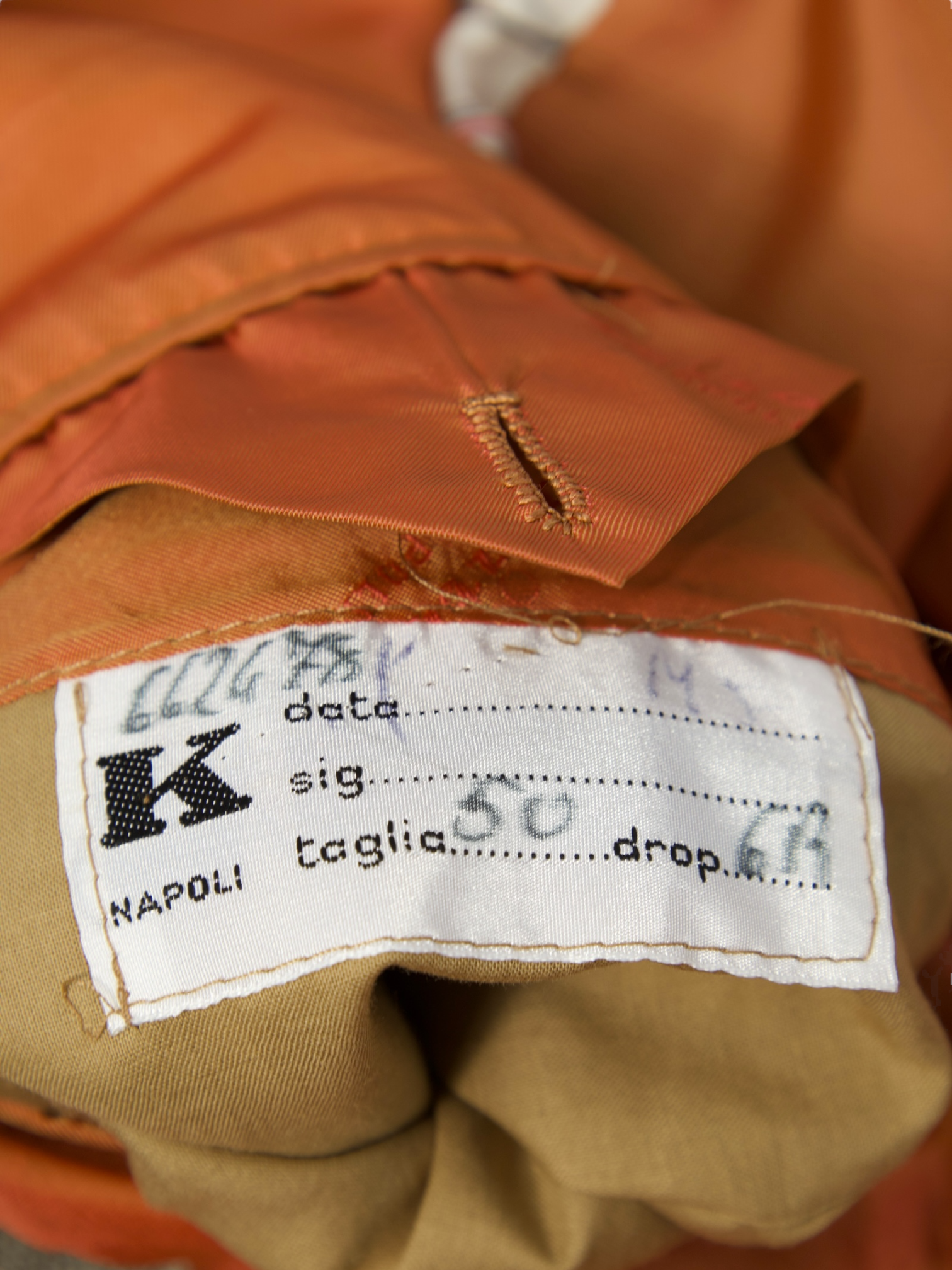 The ‘tre bottoni stirato a due’, also known as the three rolling on two lapel style, is perhaps the most infamous characteristic of the Neapolitan style jacket. The top button and buttonhole are ornamental, so are left unbuttoned. As the lapel rolls down it elegantly folds over the top button and stops just 4 cm above the second button creating the distinct roll of the lapel the style is known for. As it is intended to remain unbuttoned, the top buttonhole is actually made inside out so the beautiful side will still be visible.