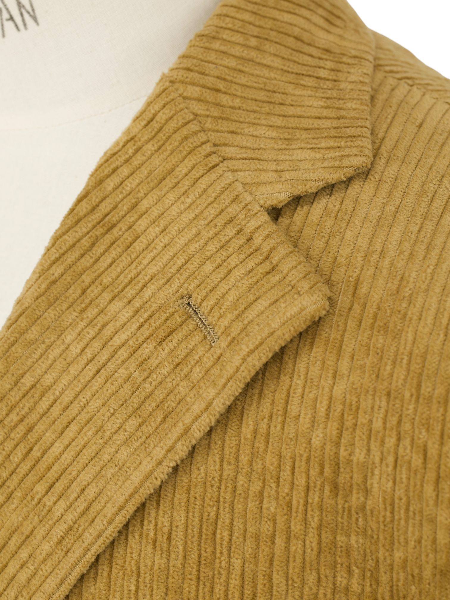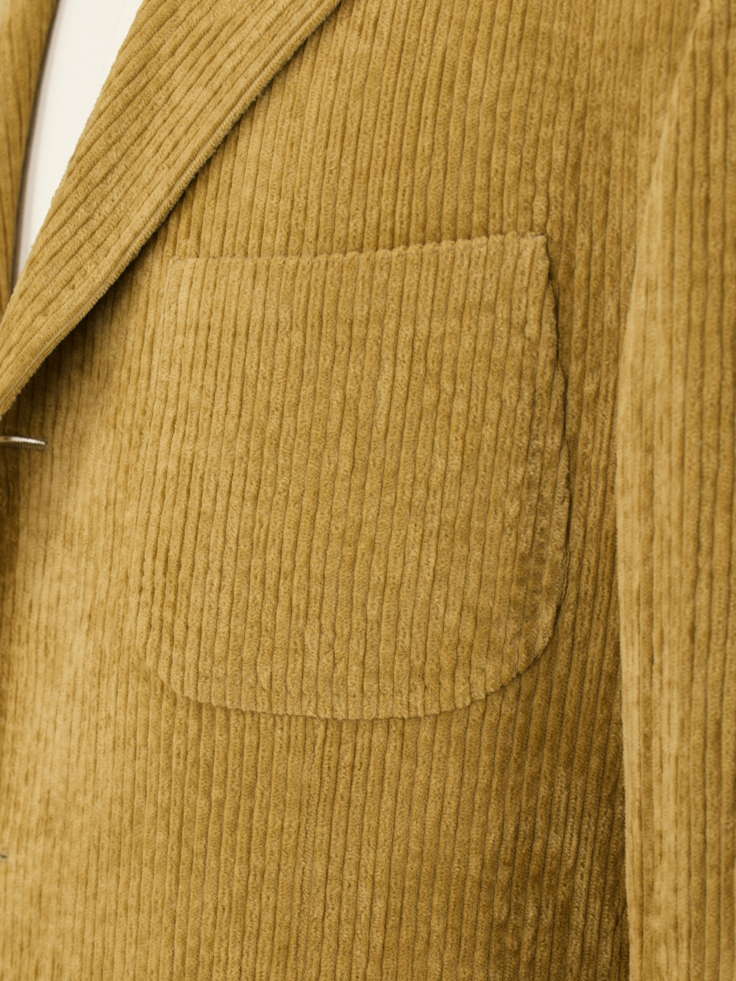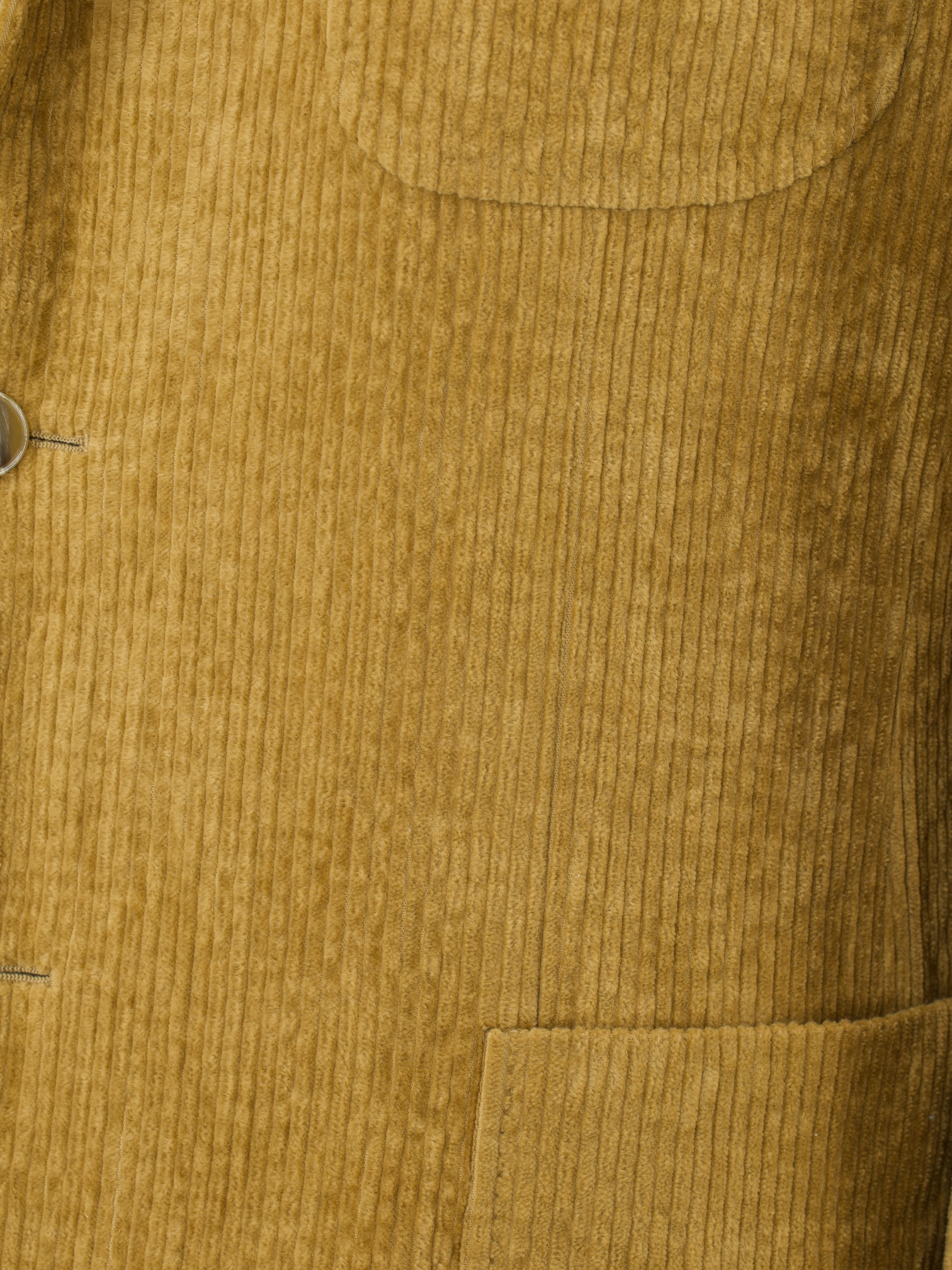 The corduroy is sourced from Pontoglio, one of Italy’s most respected mills, known for its luxurious fabrics and historical expertise in velvets and textured cottons. Their proprietary "Vulcano" corduroy features wide-set wales with a subtle sheen and supple drape, offering depth without stiffness. The fully lined interior adds warmth and structure, making this jacket a refined layering piece for cooler seasons. With its vintage provenance and artisanal quality, it’s a thoughtful addition to a wardrobe that values both story and style. Discover the elaborated sartorial details below.