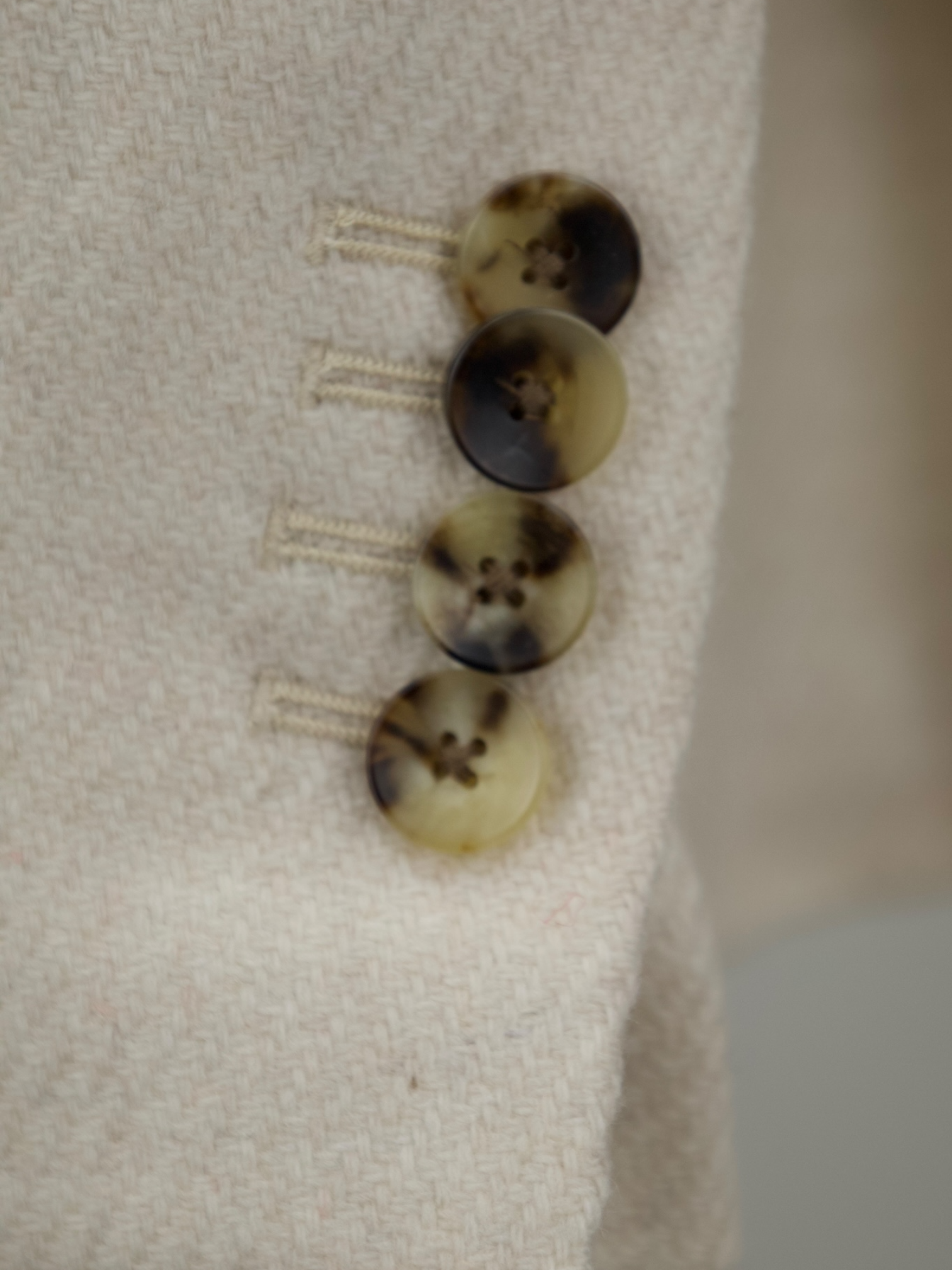 Horn buttons are prized for their quality. They are made with the finest genuine horn material, improving the appearance of the suit. And because they are so strong, you don't have to worry about them cracking or breaking.
