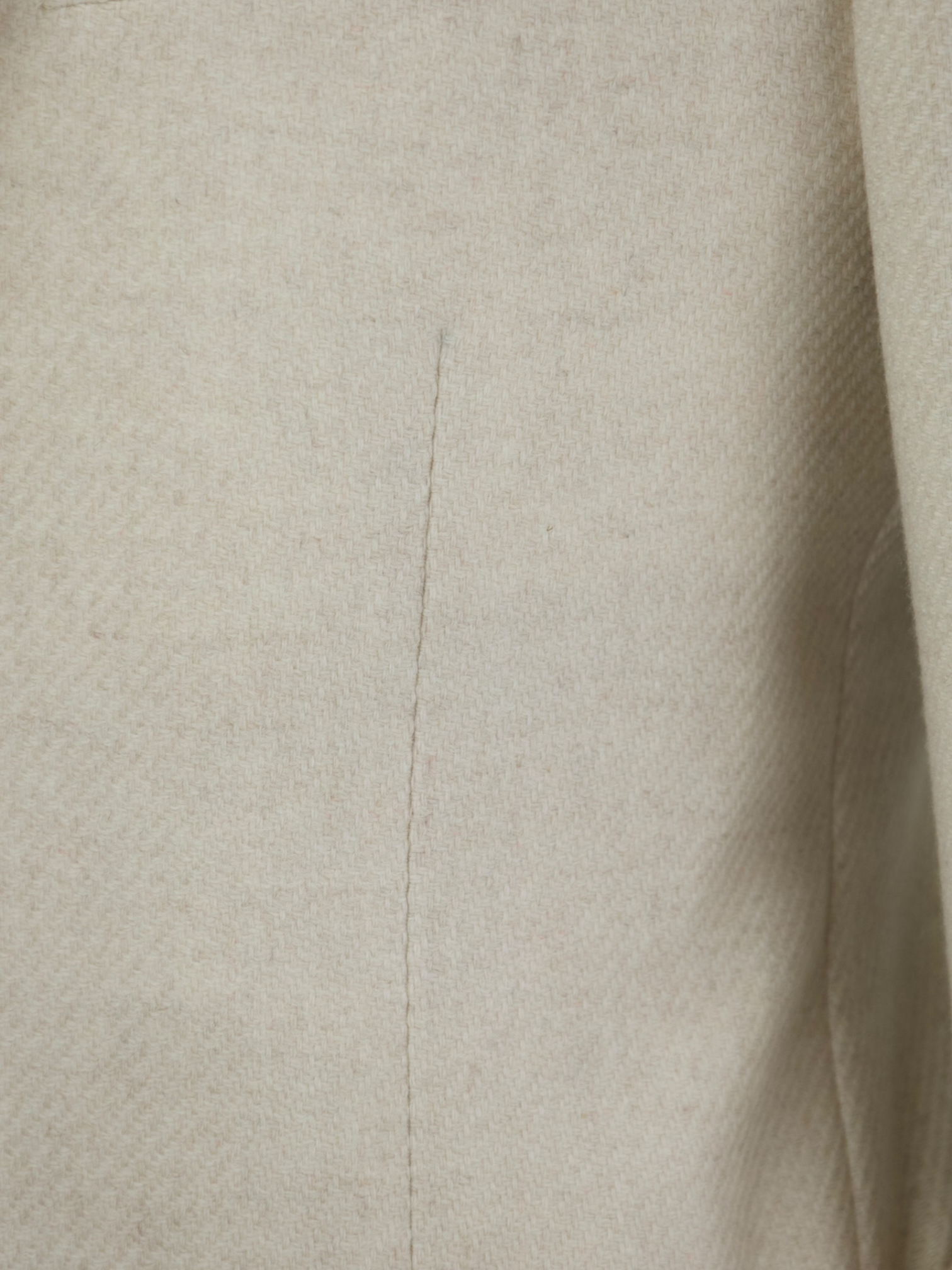 The tailors adds two darts - think of them as pinched seams - to ensure the jacket’s body achieves a slim silhouette. The process, called mezzo punto riprese, is done entirely by hand.