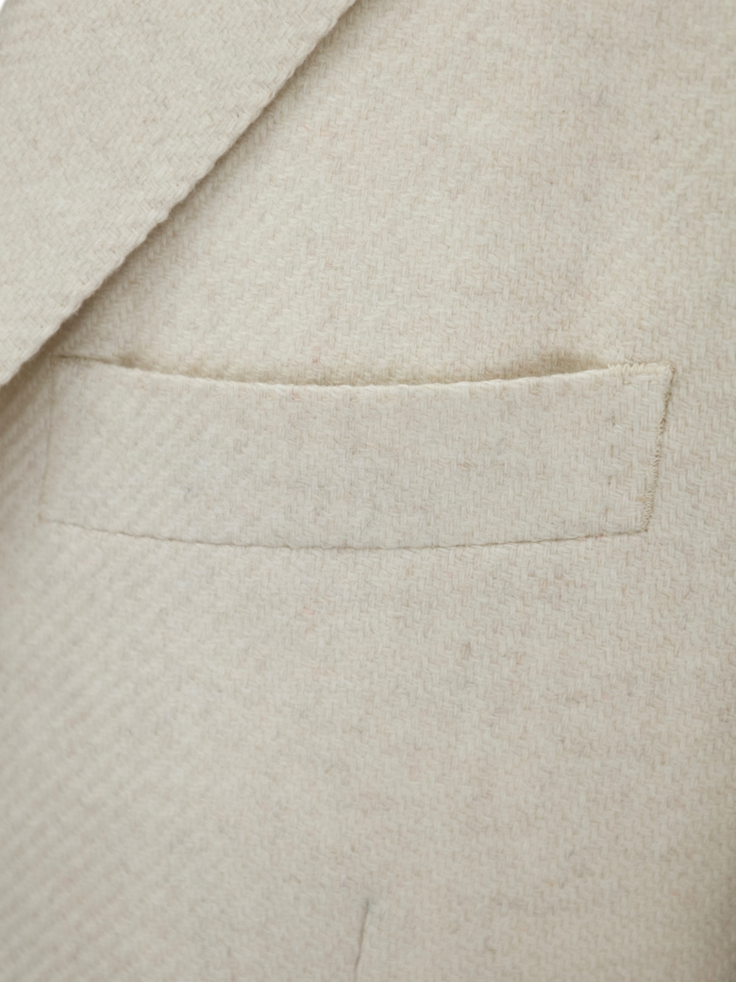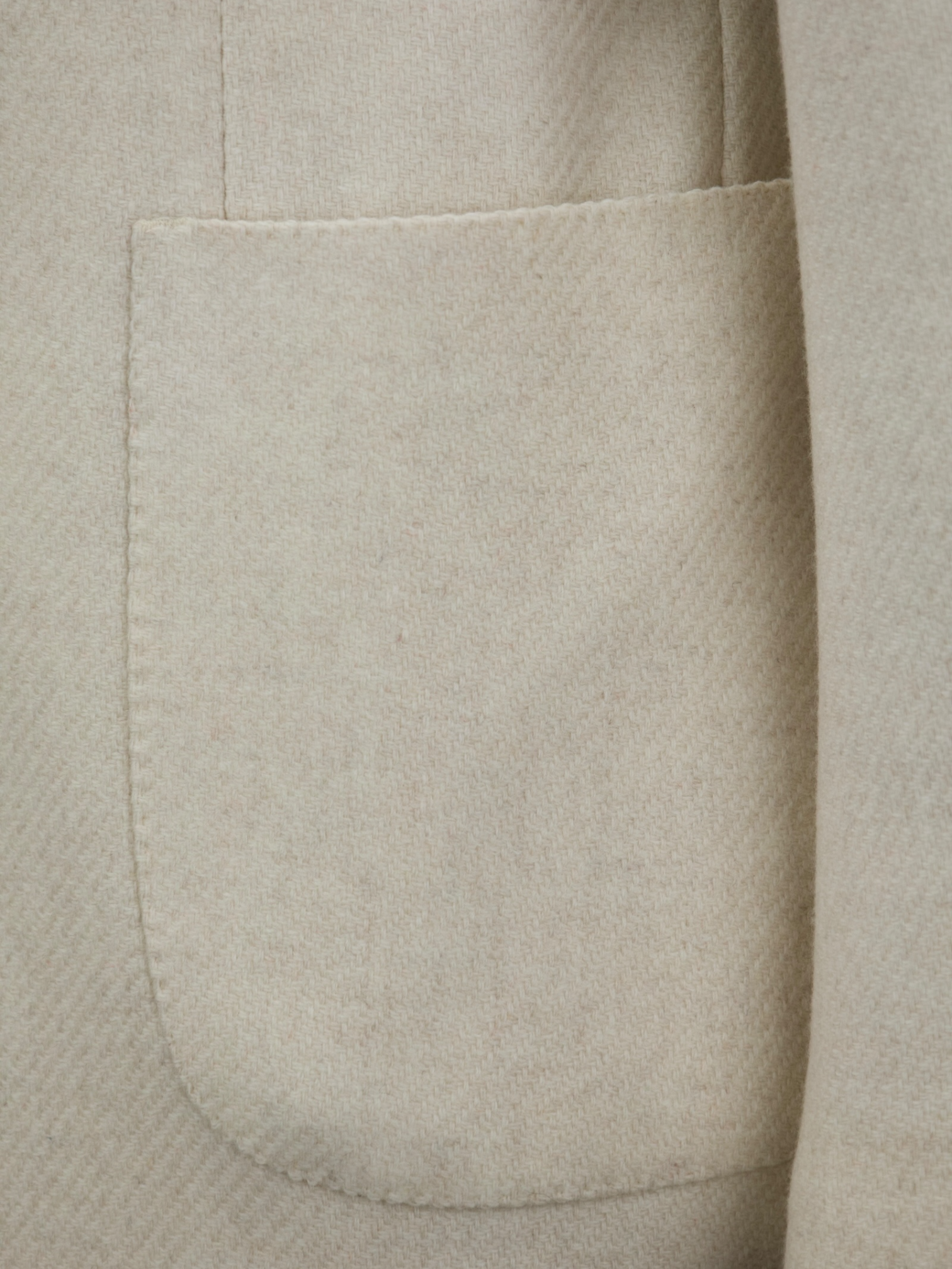 The barchetta pocket is often thought to be a tailoring detail exclusively from Italy. The word “barchetta” is Italian for “little boat.” It describes how the pocket floats on the chest, gently angled upwards, like the bow of a sailboat.