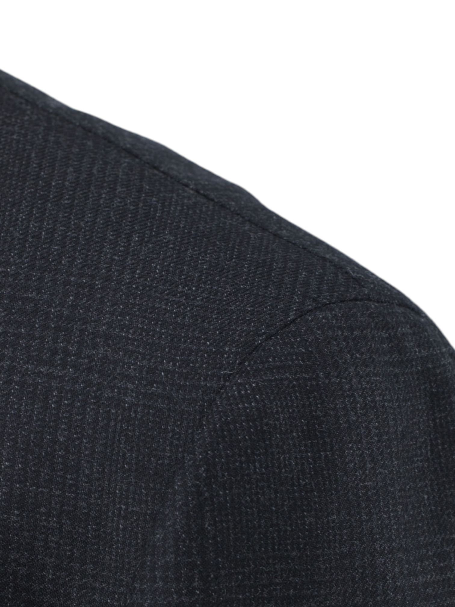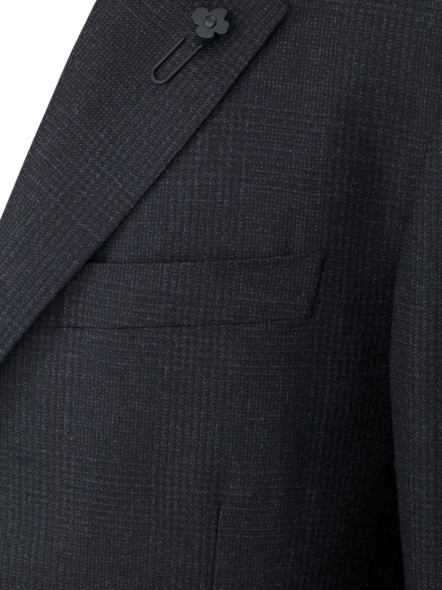 Discover the Lardini dark grey pure-wool shadow-check jacket, a quietly refined piece that reveals its character the closer you look. The cloth is lightly brushed, giving it a soft, almost velvety handle, while the subtle shadow-check pattern adds depth without overwhelming the eye. It drapes beautifully, falling with a natural ease that feels as comfortable as it looks polished. Notch lapels, patch pockets and dark grey buttons keep the design understated, while the butterfly half lining ensures lightness and fluid movement. The signature Lardini black flower pin at the lapel offers a discreet point of distinction.